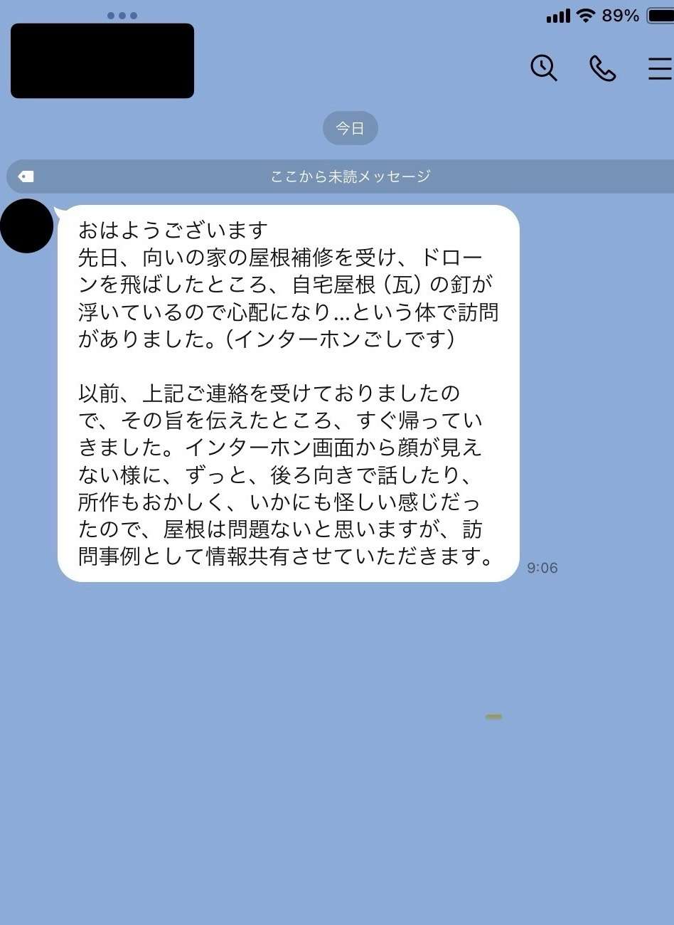 ここ数年で、このようなお問い合わせが急増しているので、施工したお客様に注意喚起として、そのような訪問業者には気をつけてくださいとご連絡を入れていました。