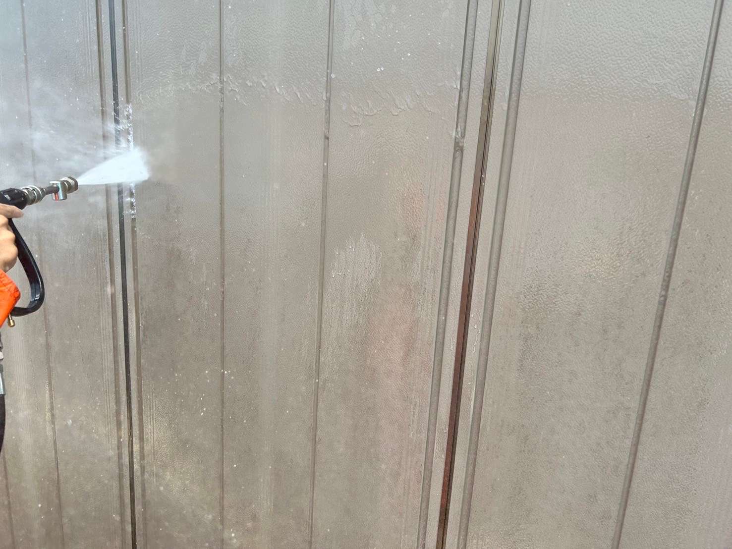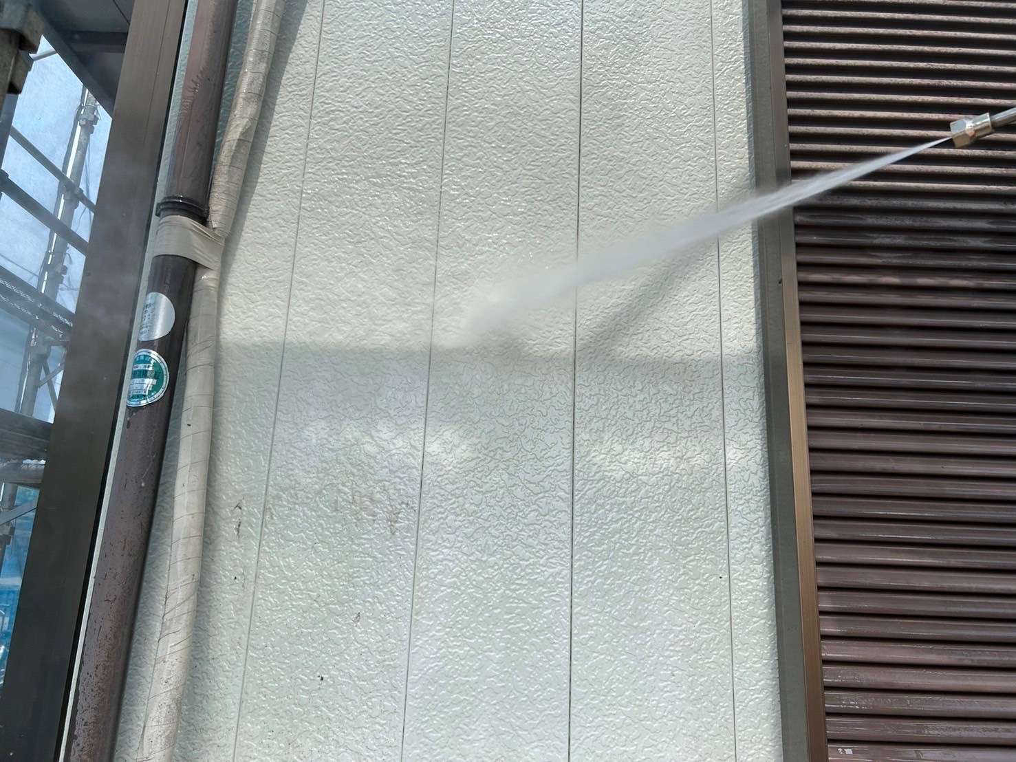 高圧洗浄は、古い塗膜や汚れを取り除き、新しく塗り替える塗料をしっかり付着させるために必要な作業です。この作業をしなかったり雑に行うと、どんなに良い塗料を塗ってもすぐに剥がれてくる可能性もありますので、丁寧に洗浄作業を行う事が大切なのです。