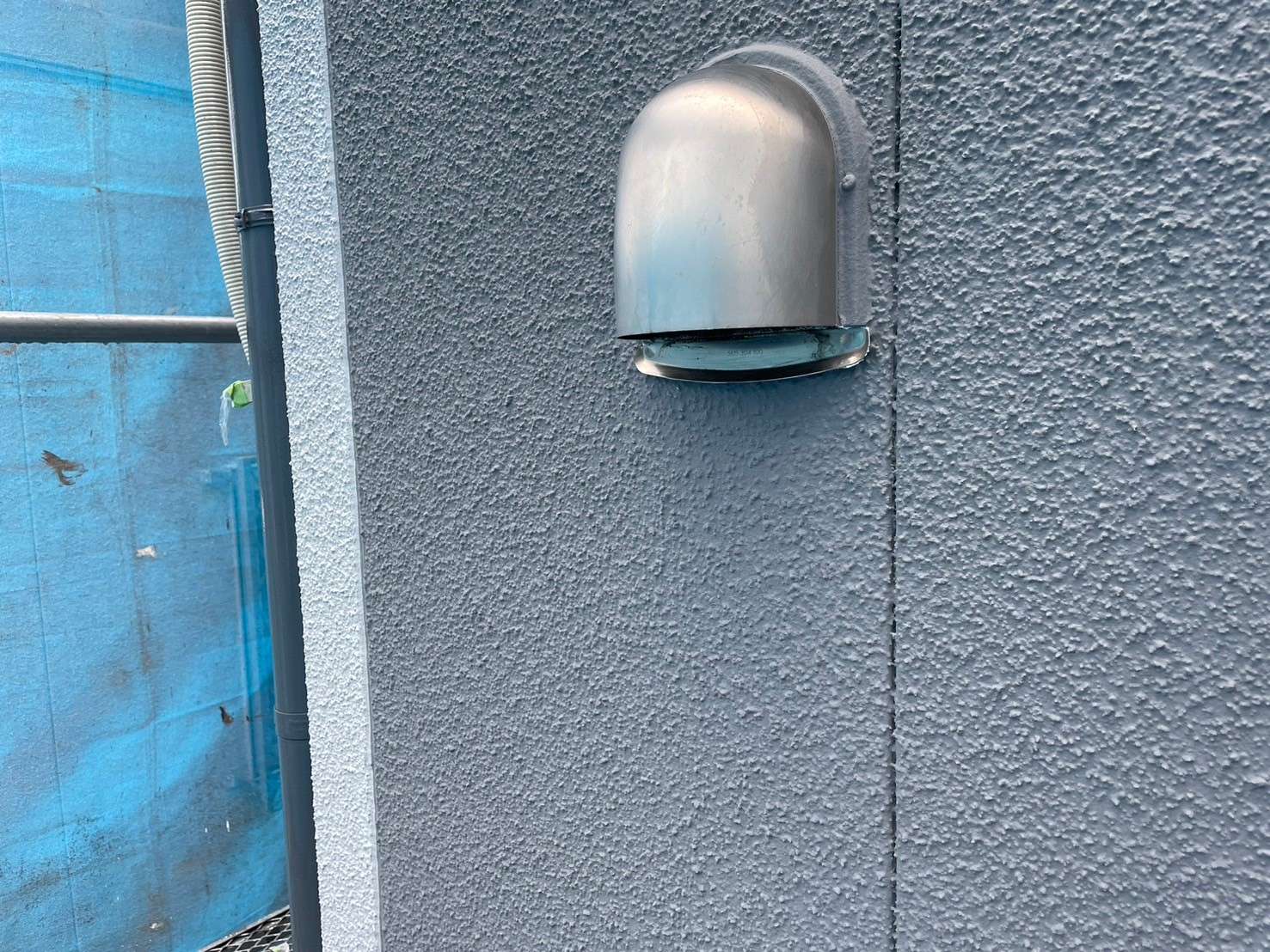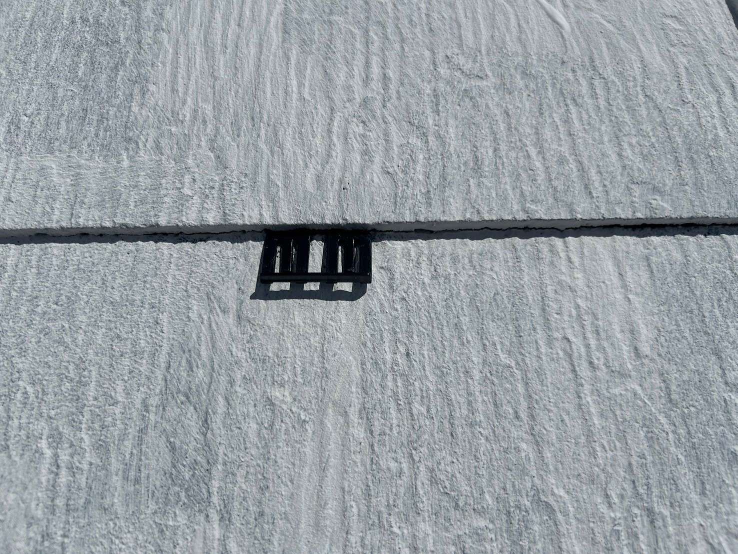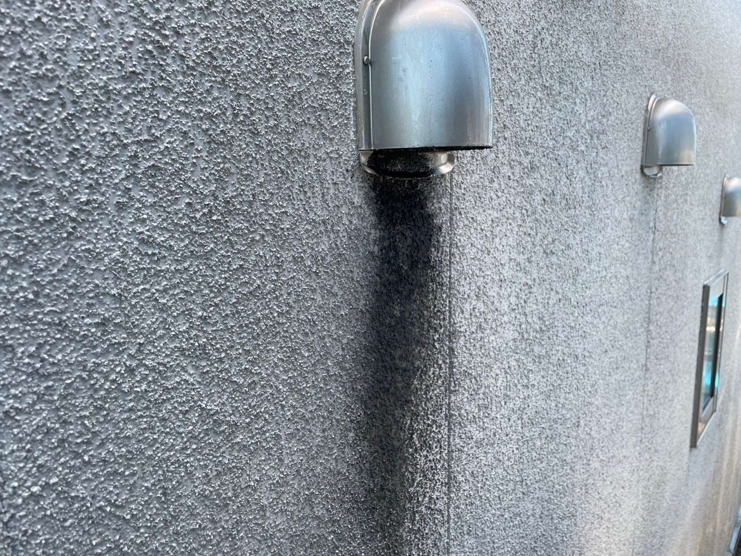 換気フードの汚れや、この面が北側に面しているため、コケや藻など汚れがつきやすいことから、アクセント色で濃いめのグレーで仕上げています。