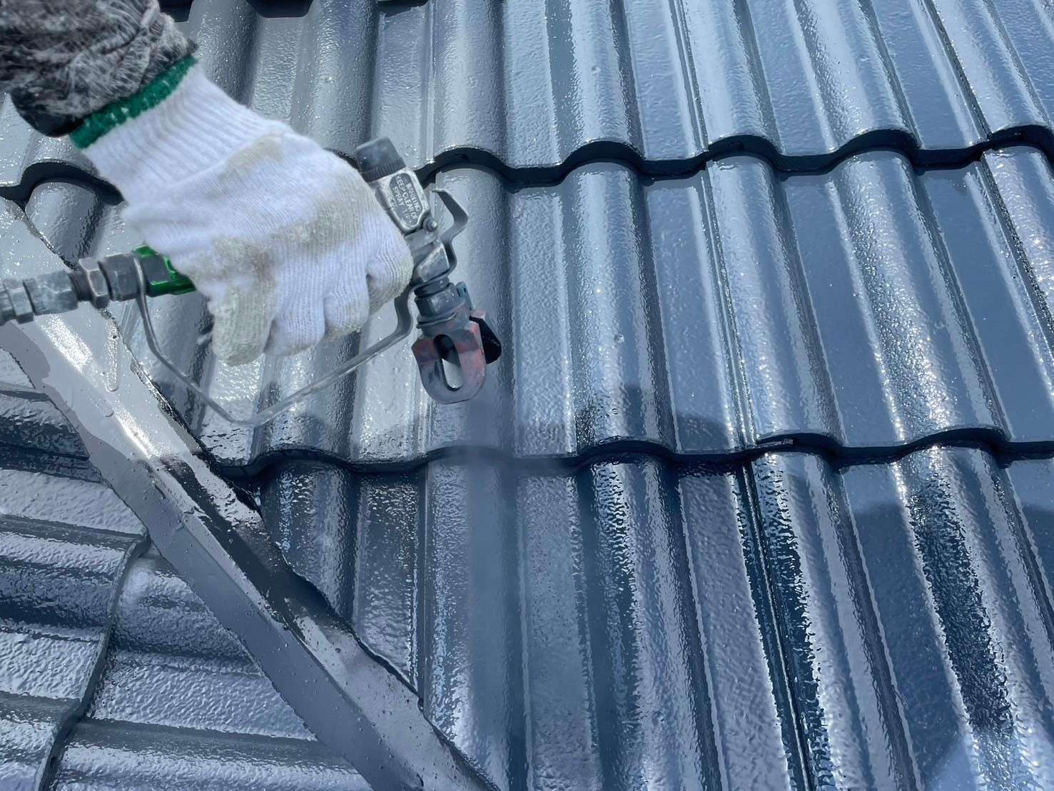 本日は、屋根塗装の上塗りの様子をご紹介します。