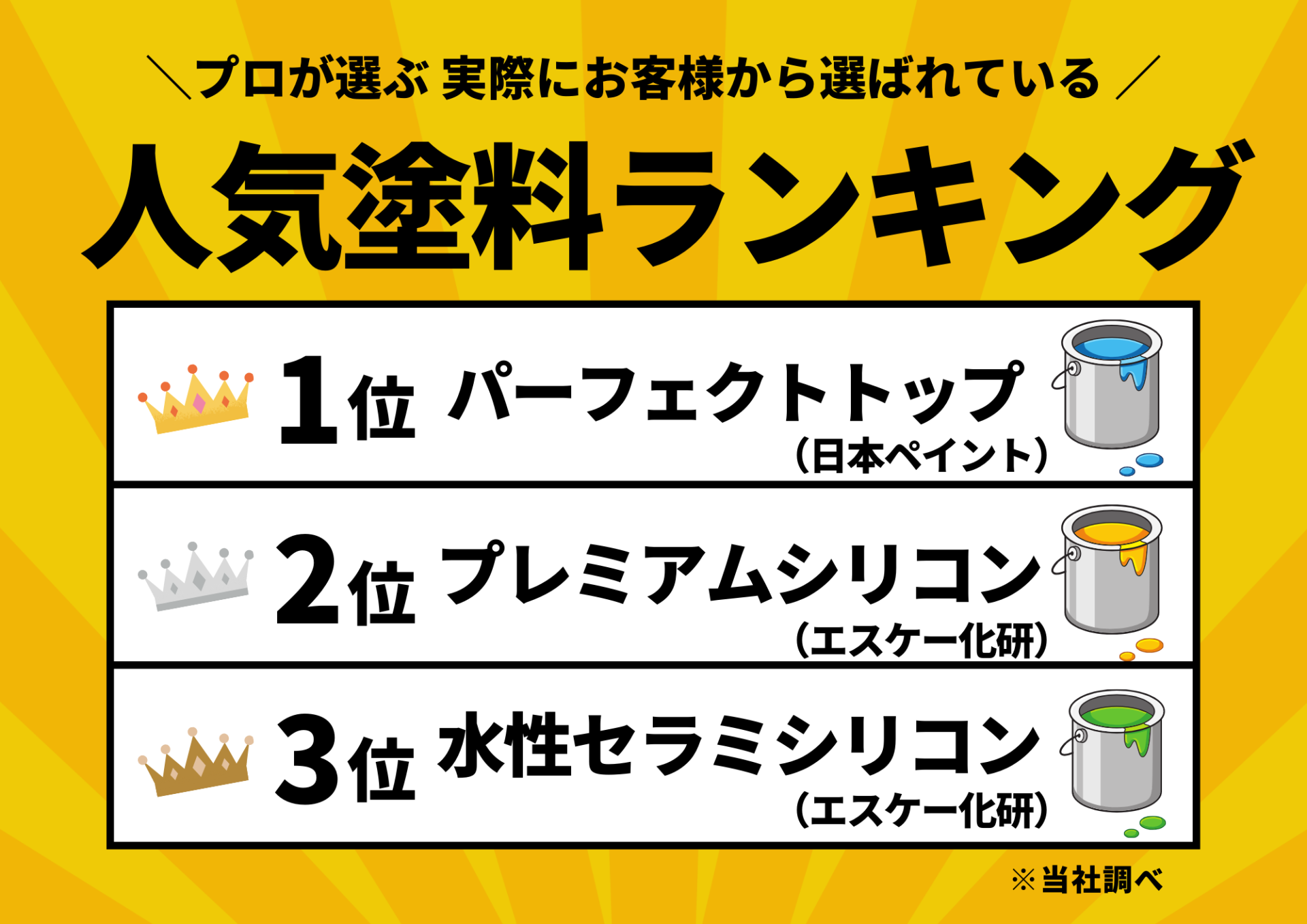 まずは、各塗料の人気ランキングから確認してみましょう!