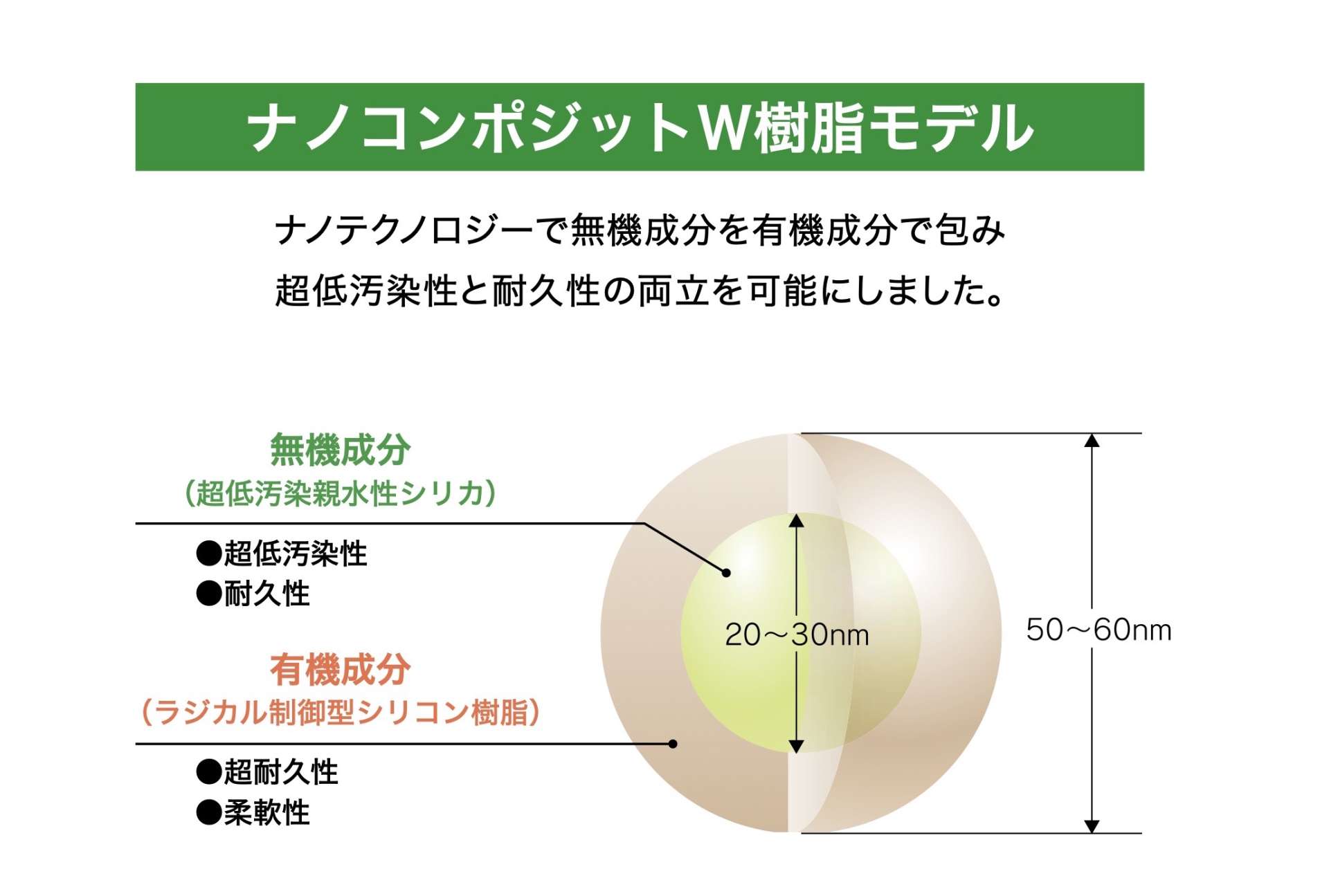 機成分と有機成分をナノレベルで 複合し、 超低汚染性と耐久性を両立した無機系塗料!