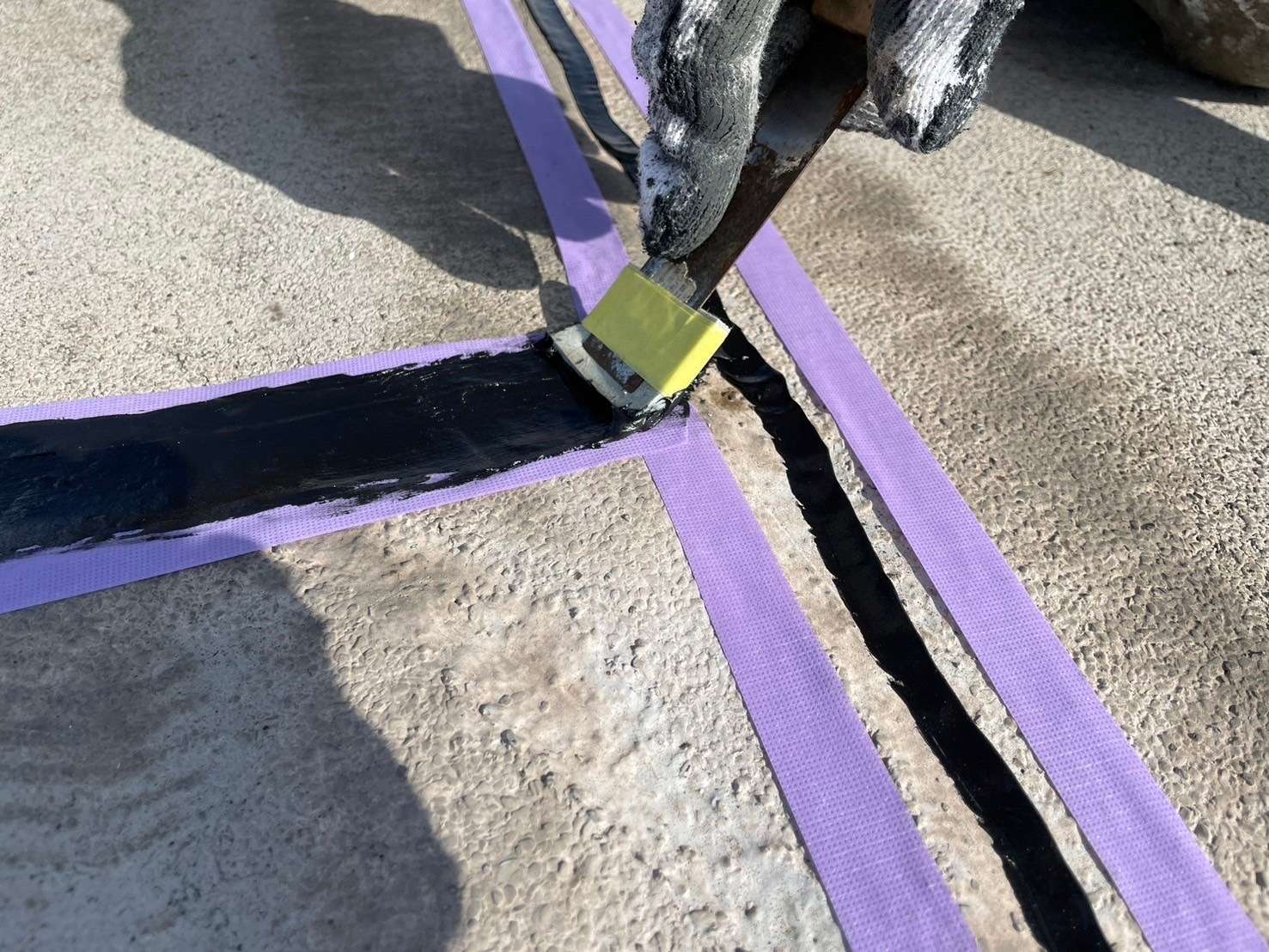 シート防水やアスファルト防水の目地にはシーリング材が充填してあります。