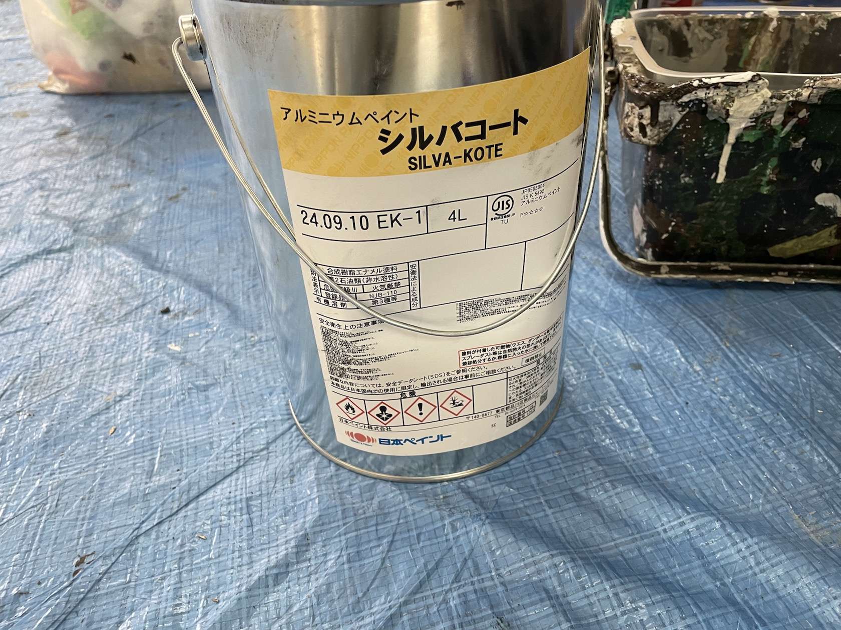 下地処理の後に使用する塗料として、日本ペイントのアルミニウムペイント シルバーコートを選びました。
