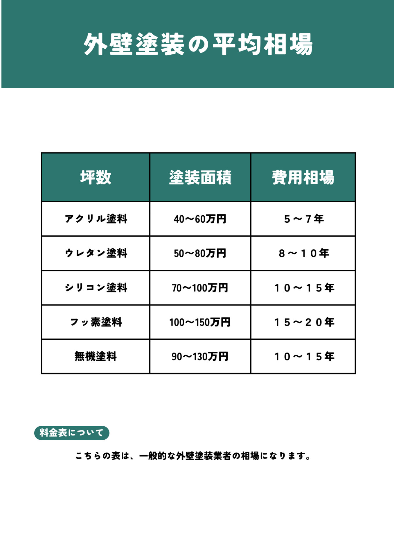 では、野田市周辺での外壁塗装費用の平均相場を見てみましょう。