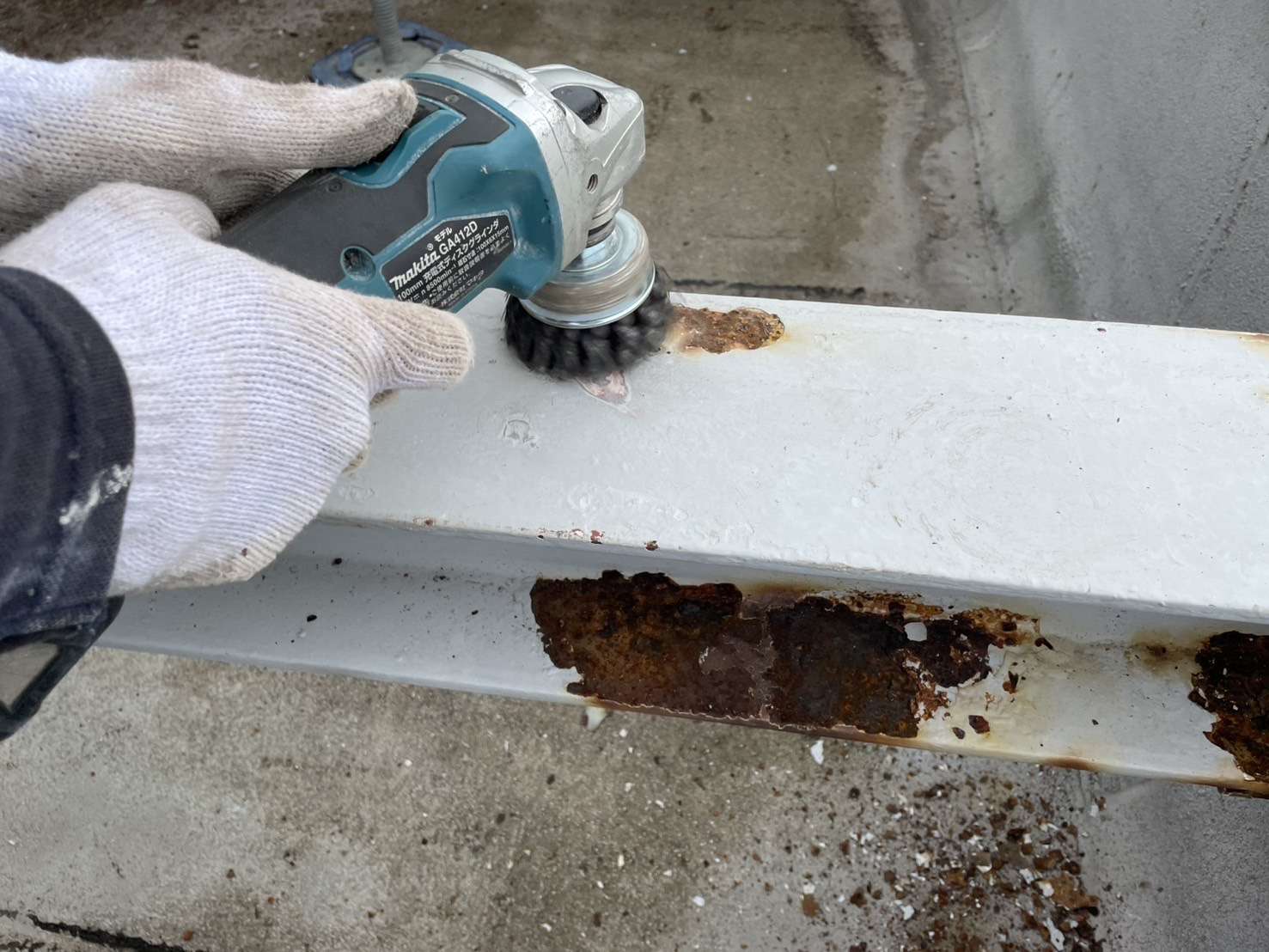 軽い錆や汚れを落とすケレンで、表面を軽く整える作業です。