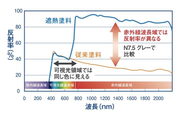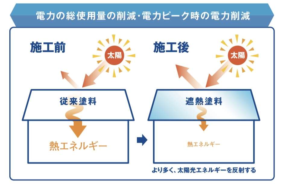 遮熱塗料とは太陽の光を反射して表面温度を下げる塗料です。