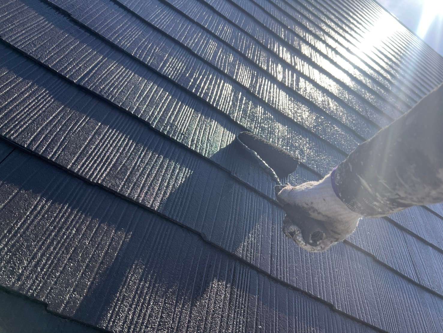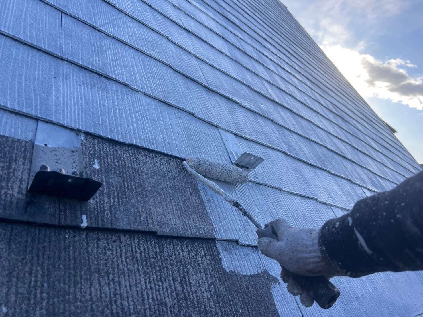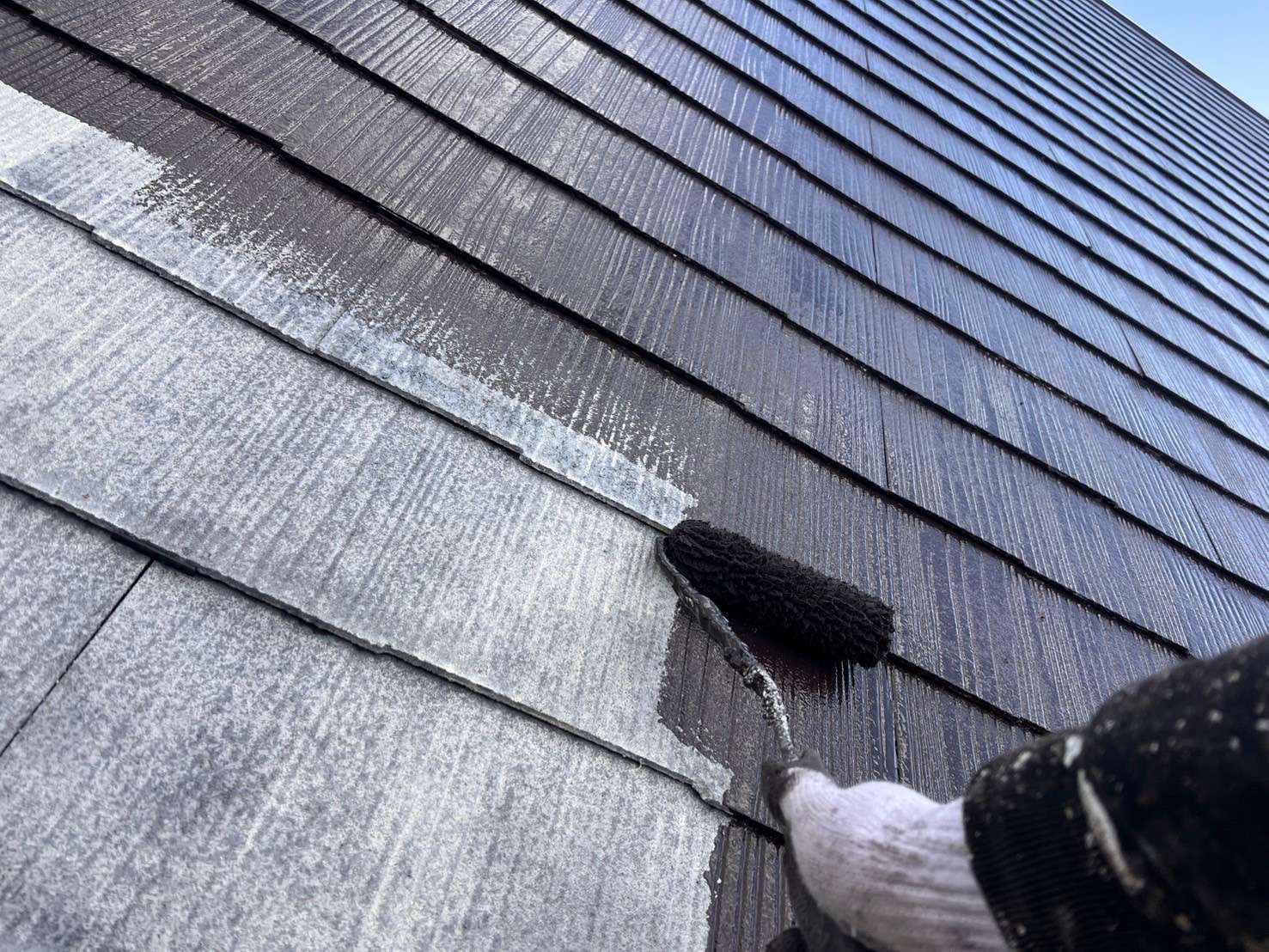 スレート屋根に遮熱塗料で塗装して行きました。