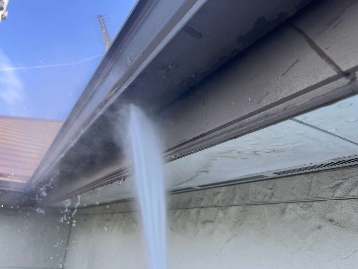 薬剤を使っていないので「すすぎ」は不要。洗浄中に汚れた床やサッシなどを軽く流して終了です。洗浄後は、外壁塗装や防水工事の前工程としても非常に重要な役割を果たします。