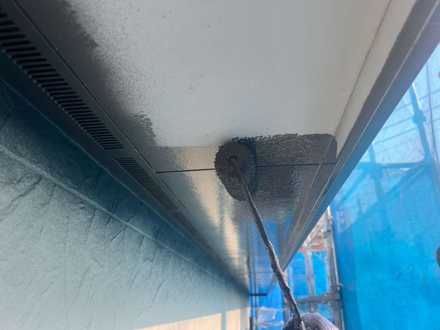 今回は、軒天井の塗装風景をご紹介致します。