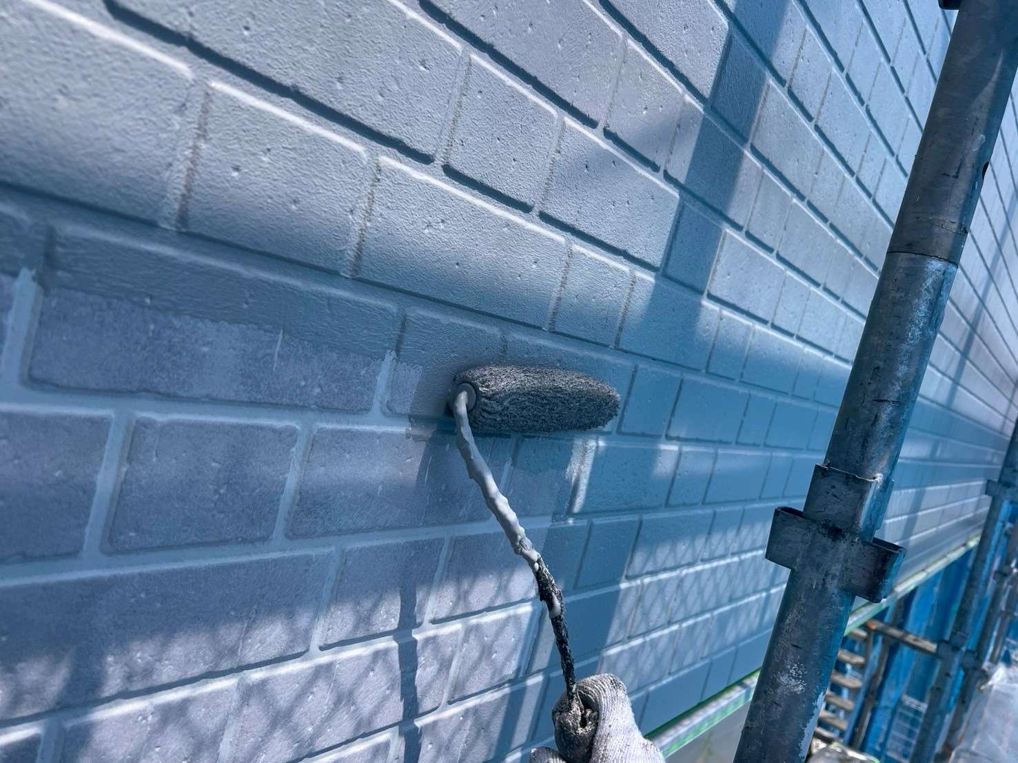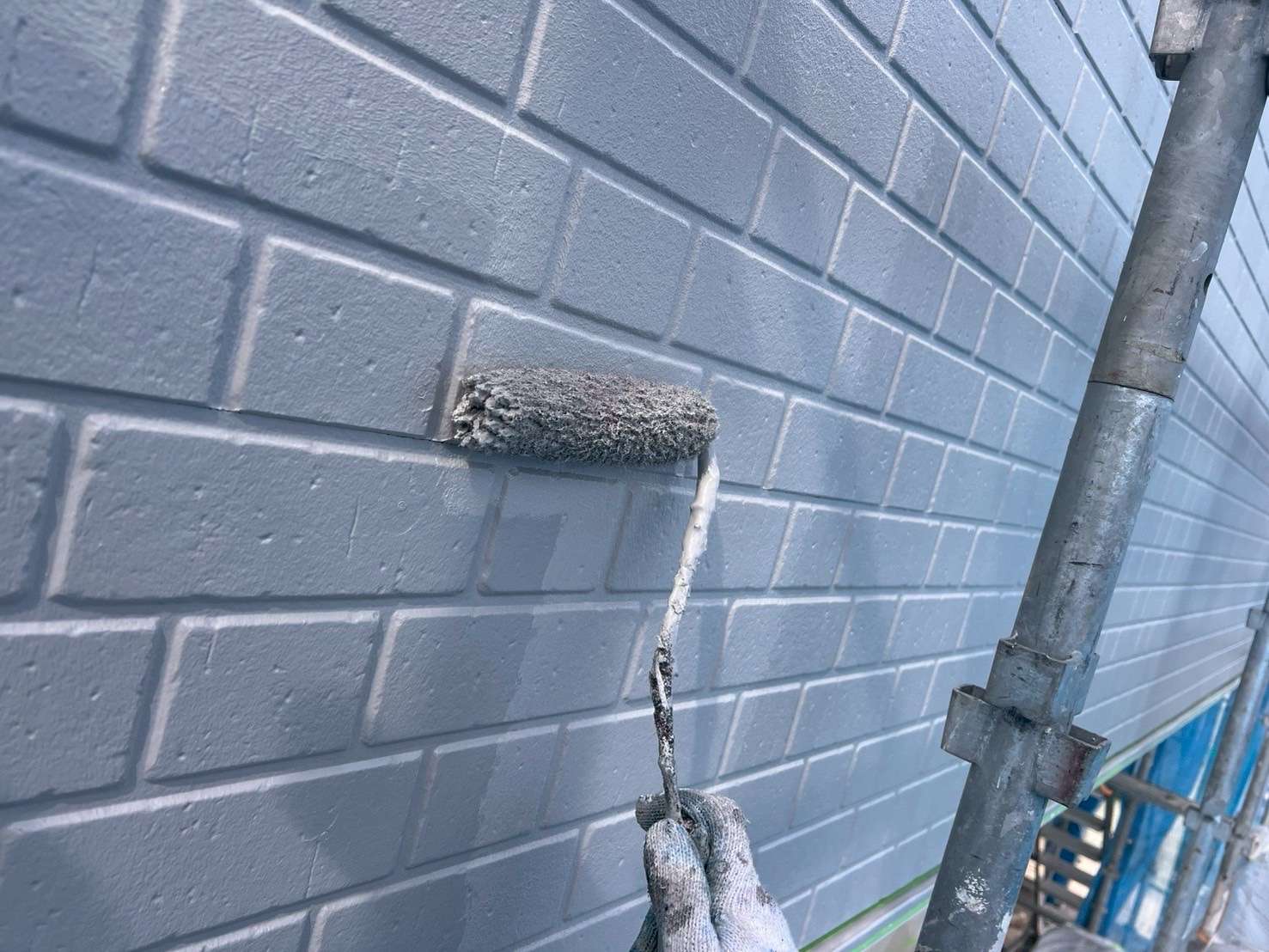 今回は、タイル柄のサイディング塗装風景になります。