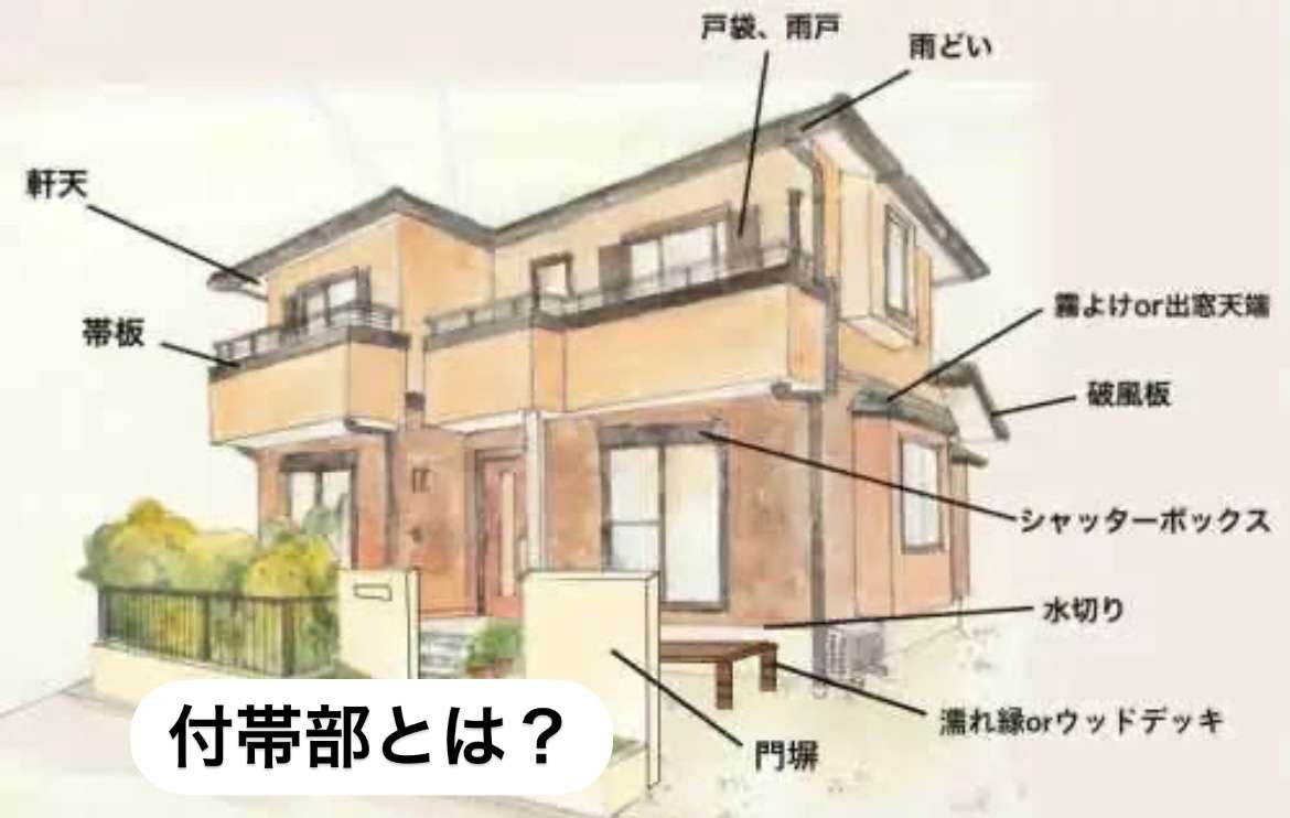 付帯部とは、外壁や屋根以外の建物の部位で、主に以下のような部分を指します: