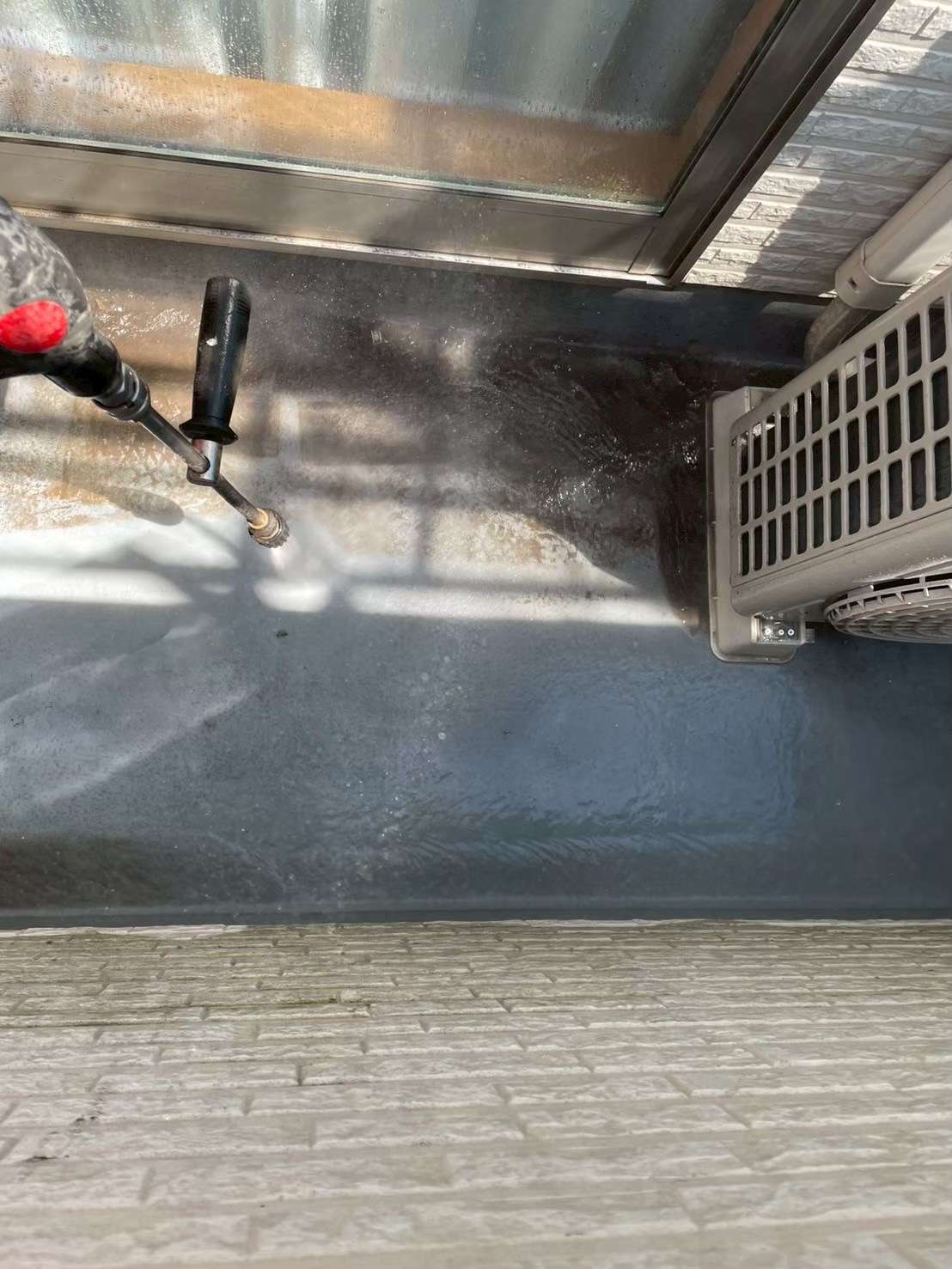 高圧洗浄は水を大量に使用し、強い水圧とモーター音が出るため、生活に多少の影響があります。
