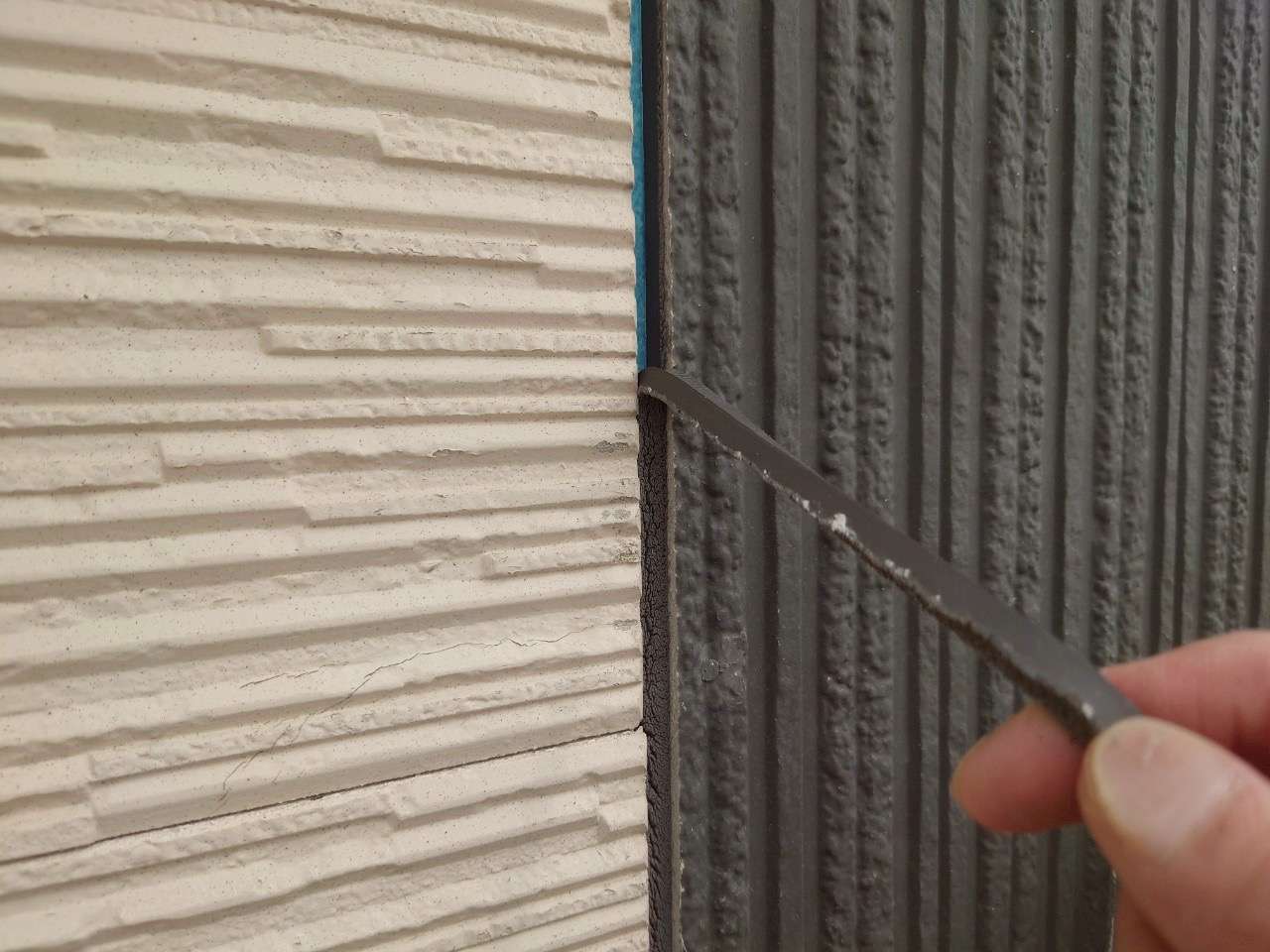 コーキング(またはシーリング)は、外壁材の隙間、窓枠、浴室などに使われている弾力のある充填剤です。主に以下のような役割を果たしています: