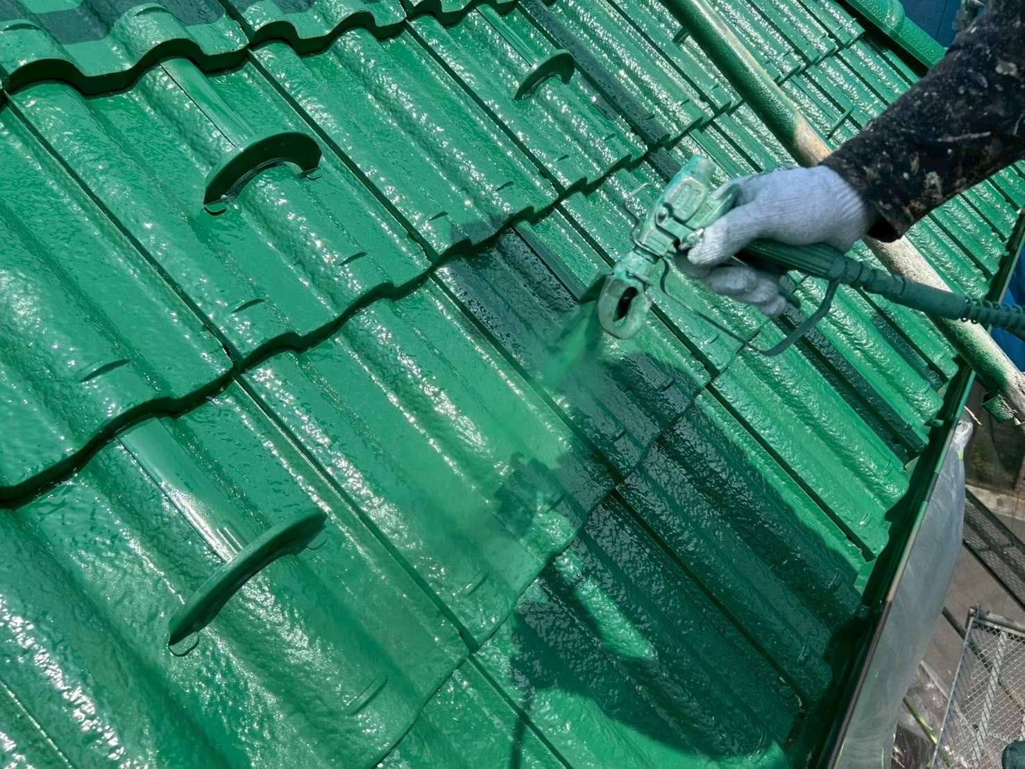 手作業のローラー塗装に比べ、スプレー塗装は施工時間が短くて済むのも特徴。広範囲の屋根を塗るのに効率的です。