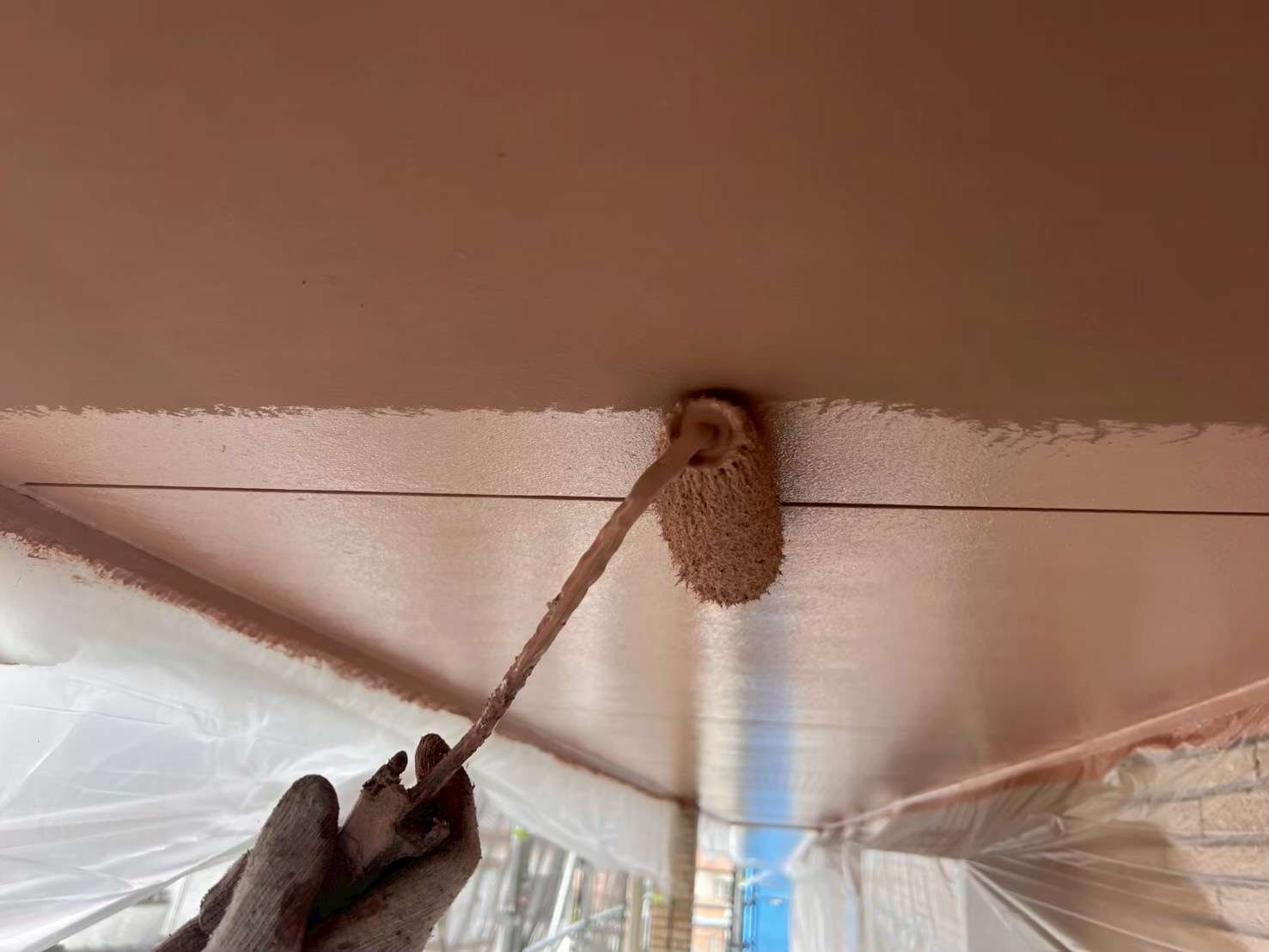 今回は、軒天井の塗装工事風景をご紹介いたします。