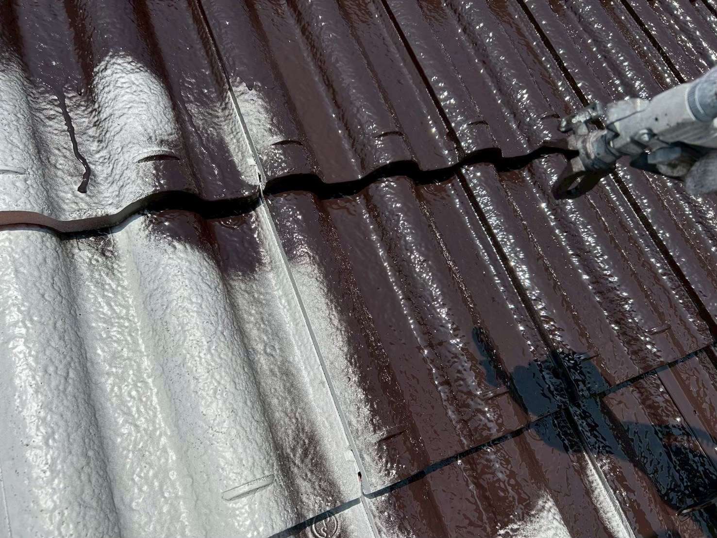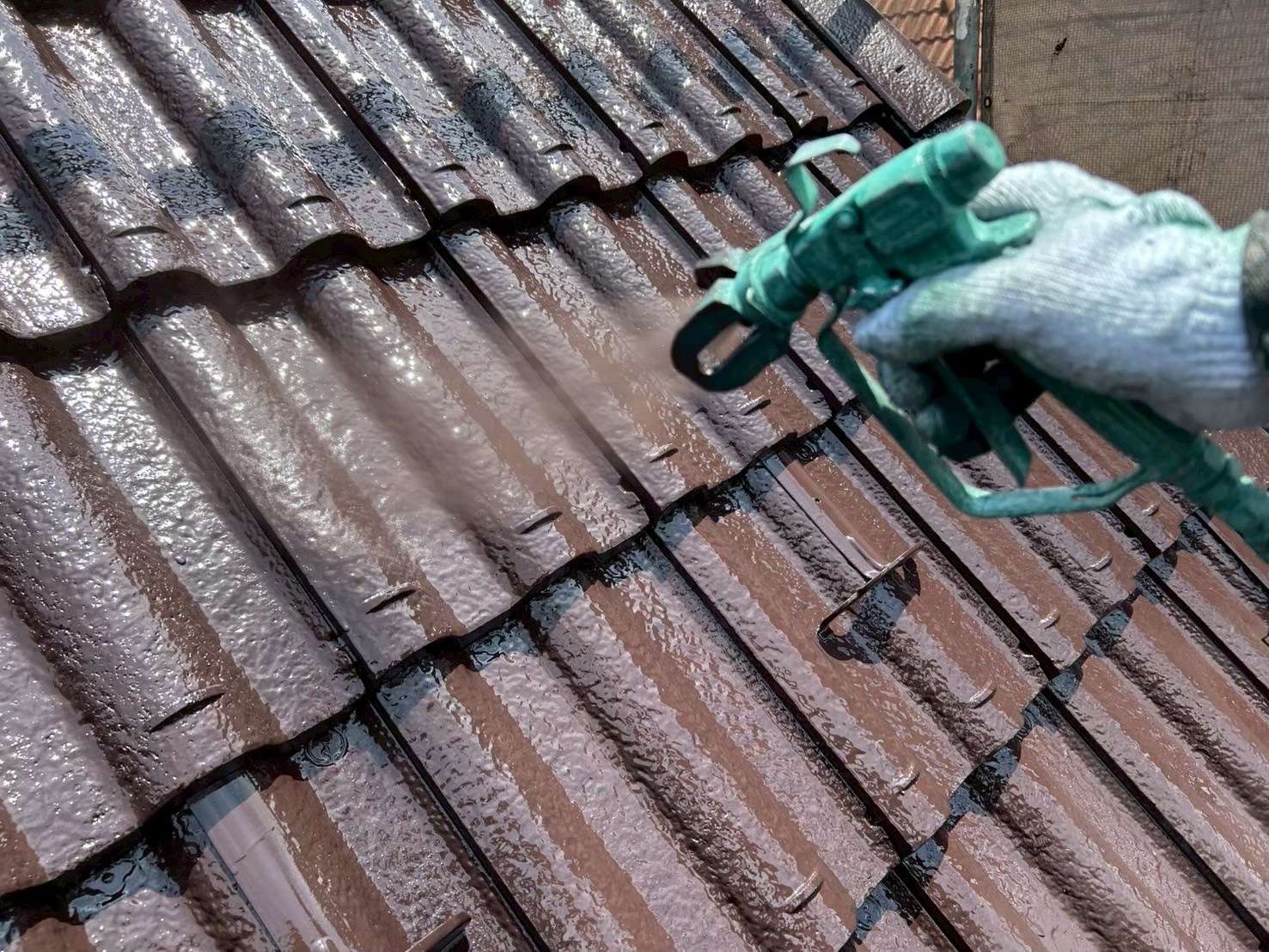 今回は、屋根の吹付塗装作業をご紹介いたします。