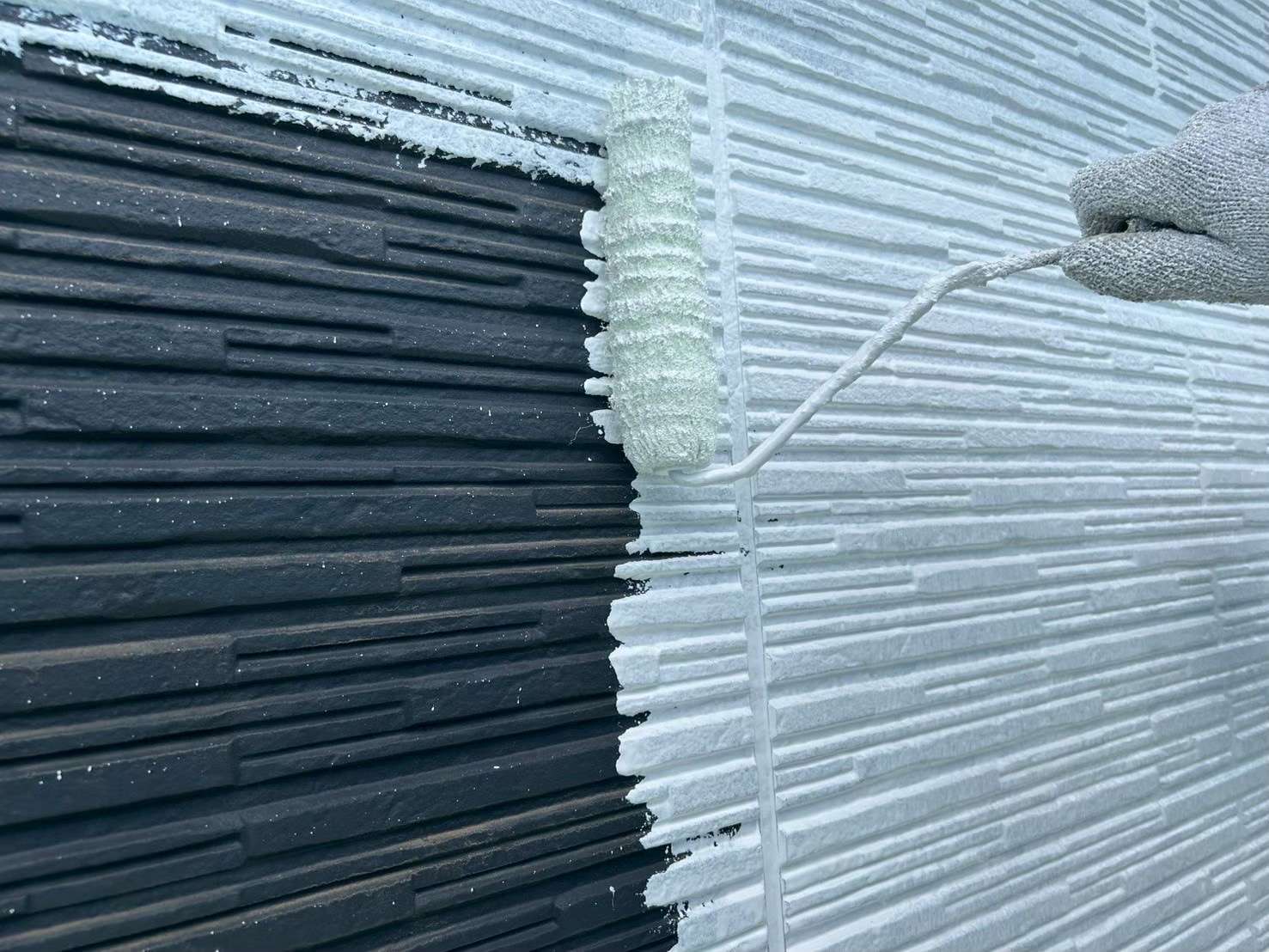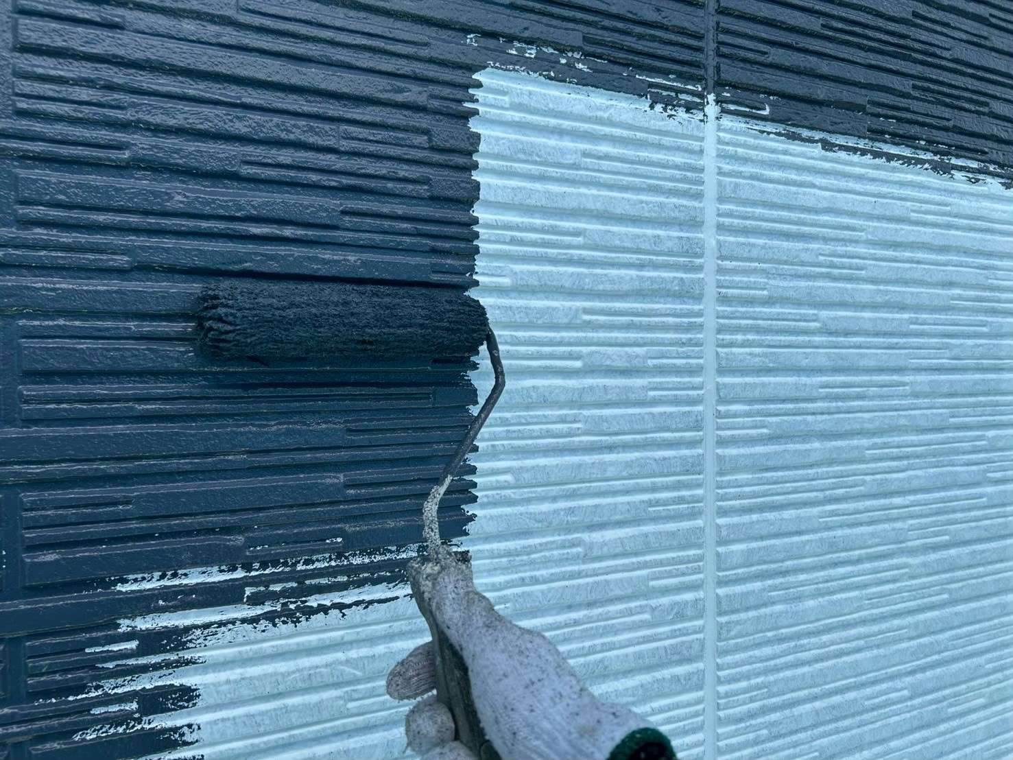 今回は、2パターンあるサイディング壁の1パターンの塗装風景をご紹介いたします。