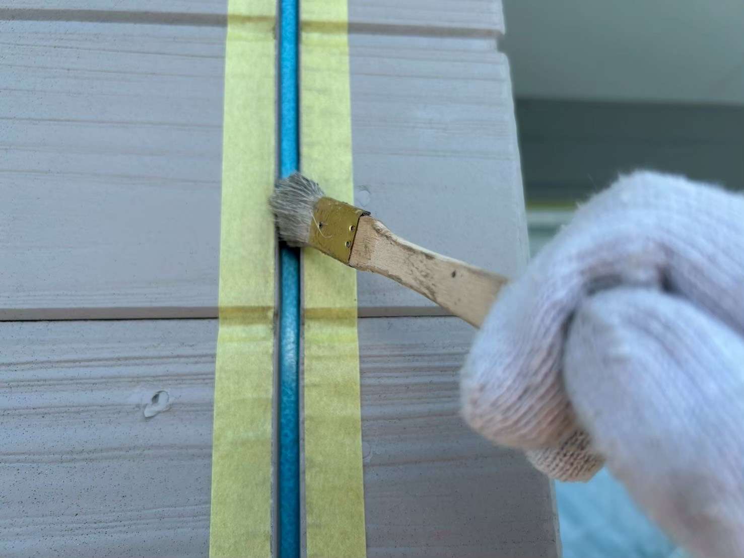 この部分は、外壁材のすき間を埋めて雨水の侵入を防ぐ大切な防水材。住宅の耐久性を守る“縁の下の力持ち”のような存在です。