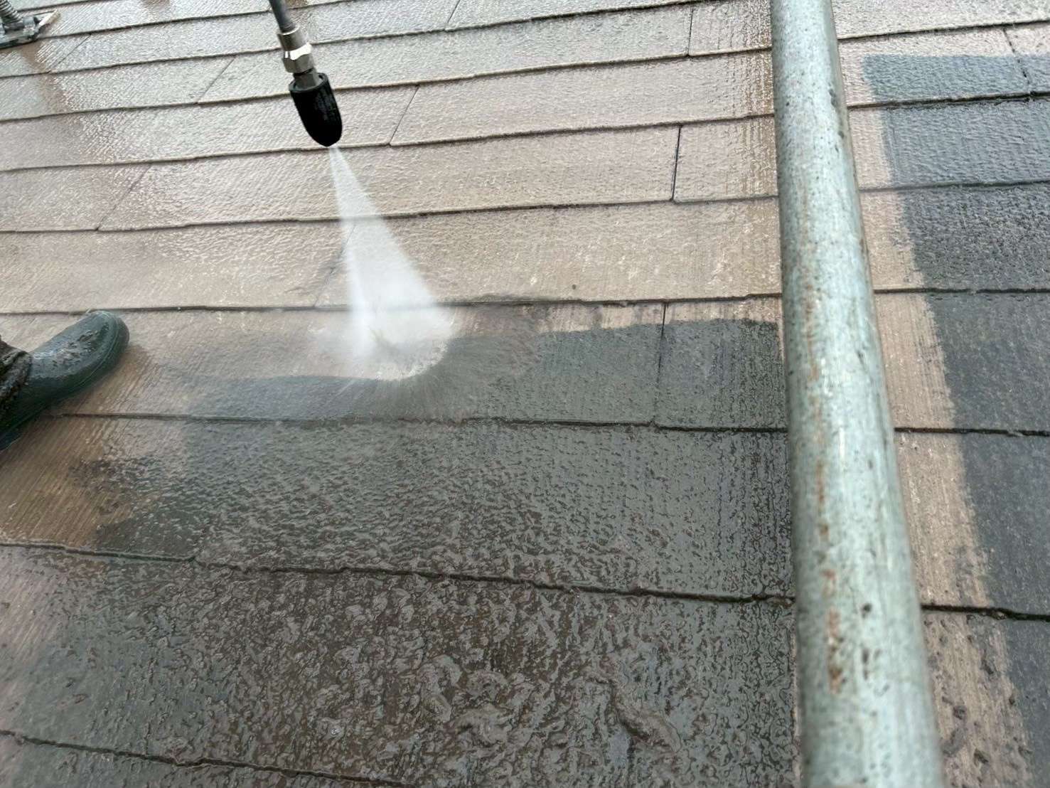 屋根塗装の工程で欠かせないのが「高圧洗浄」です。