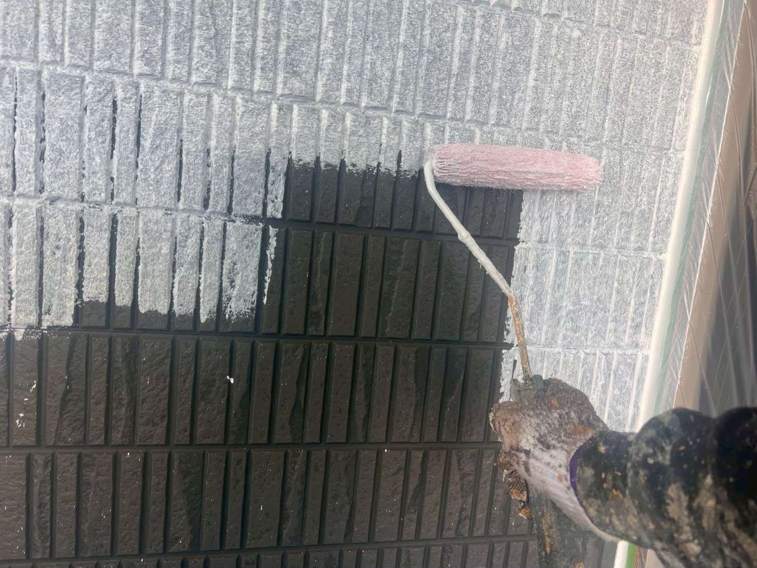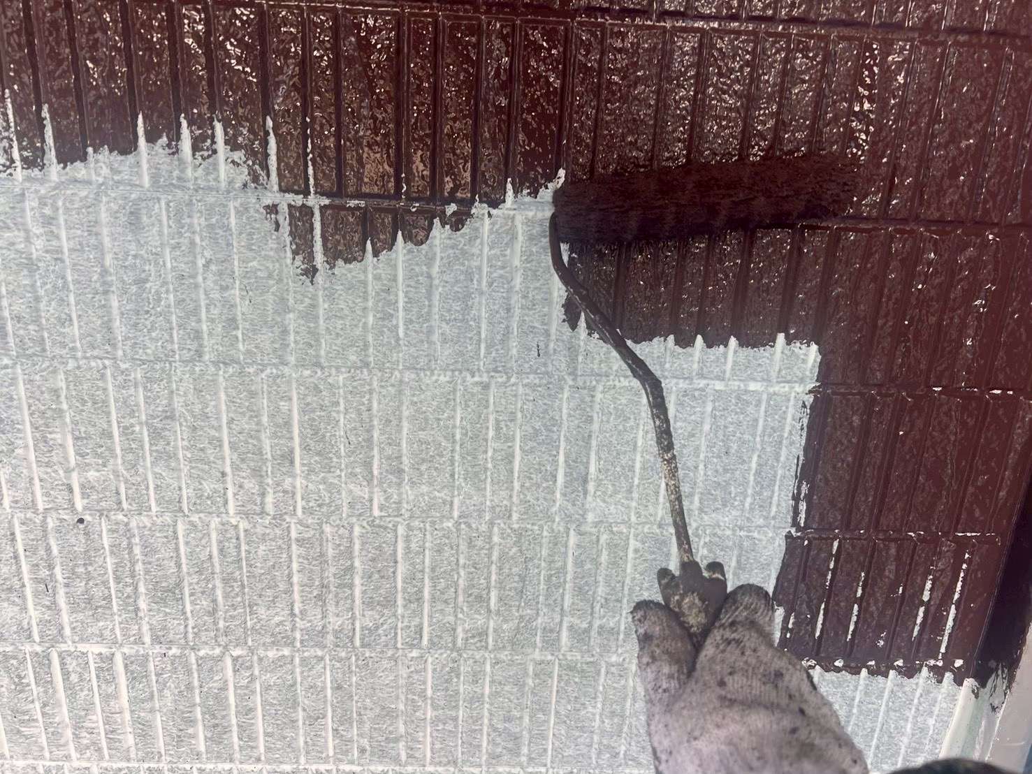 もし目地部分の塗膜が薄いままだと、数年後に色ムラが出たり、劣化が早まったりする原因になります。そのため、刷毛を使いながら、目地一つひとつに塗料を入れ込む作業が欠かせません。