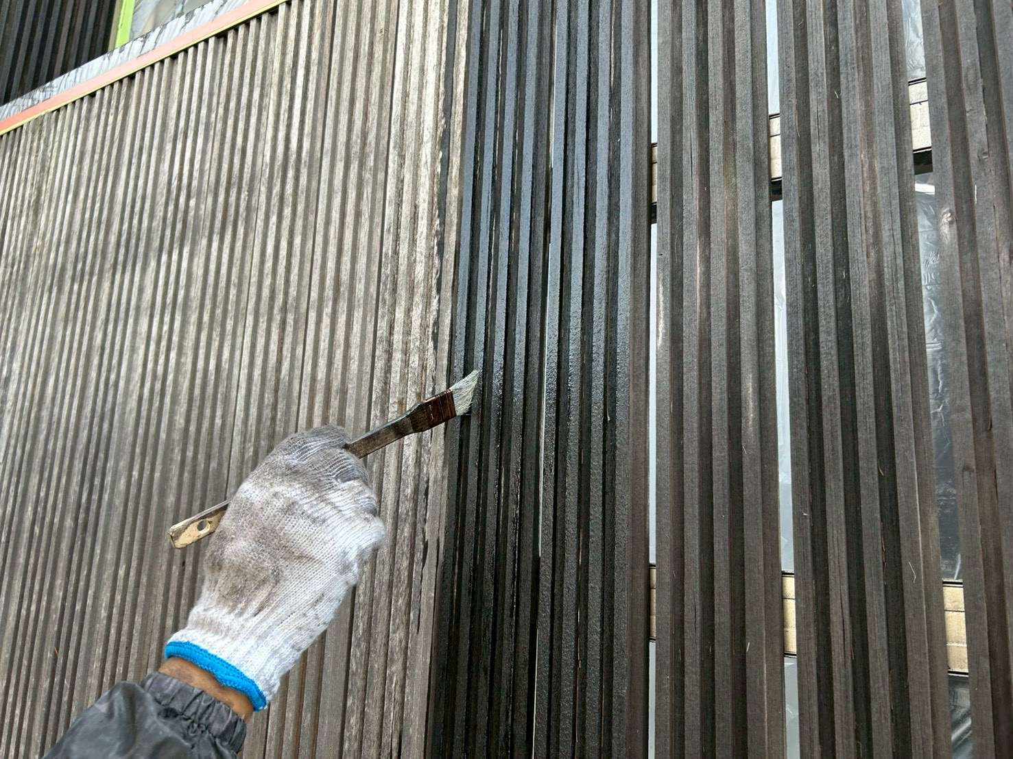 施工事例:外壁のアクセント木部をオイルステインで長持ちさせる