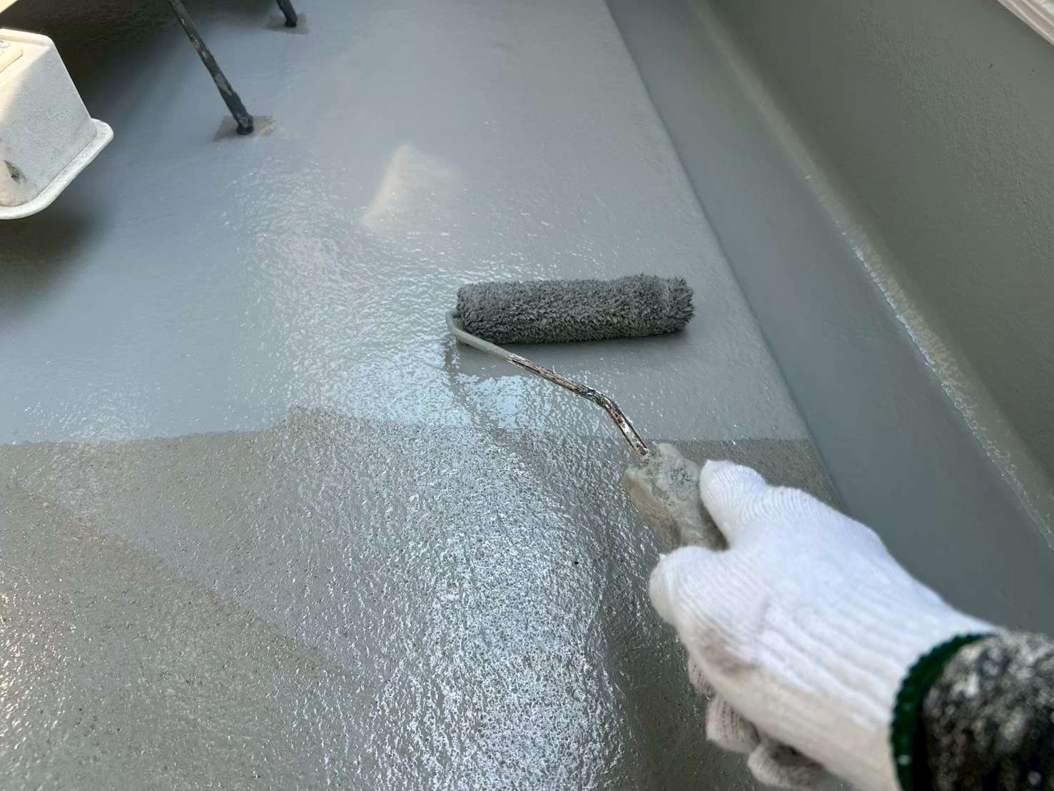 今回S様邸最後の塗装作業はベランダの防水塗装作業風景をご紹介いたします。