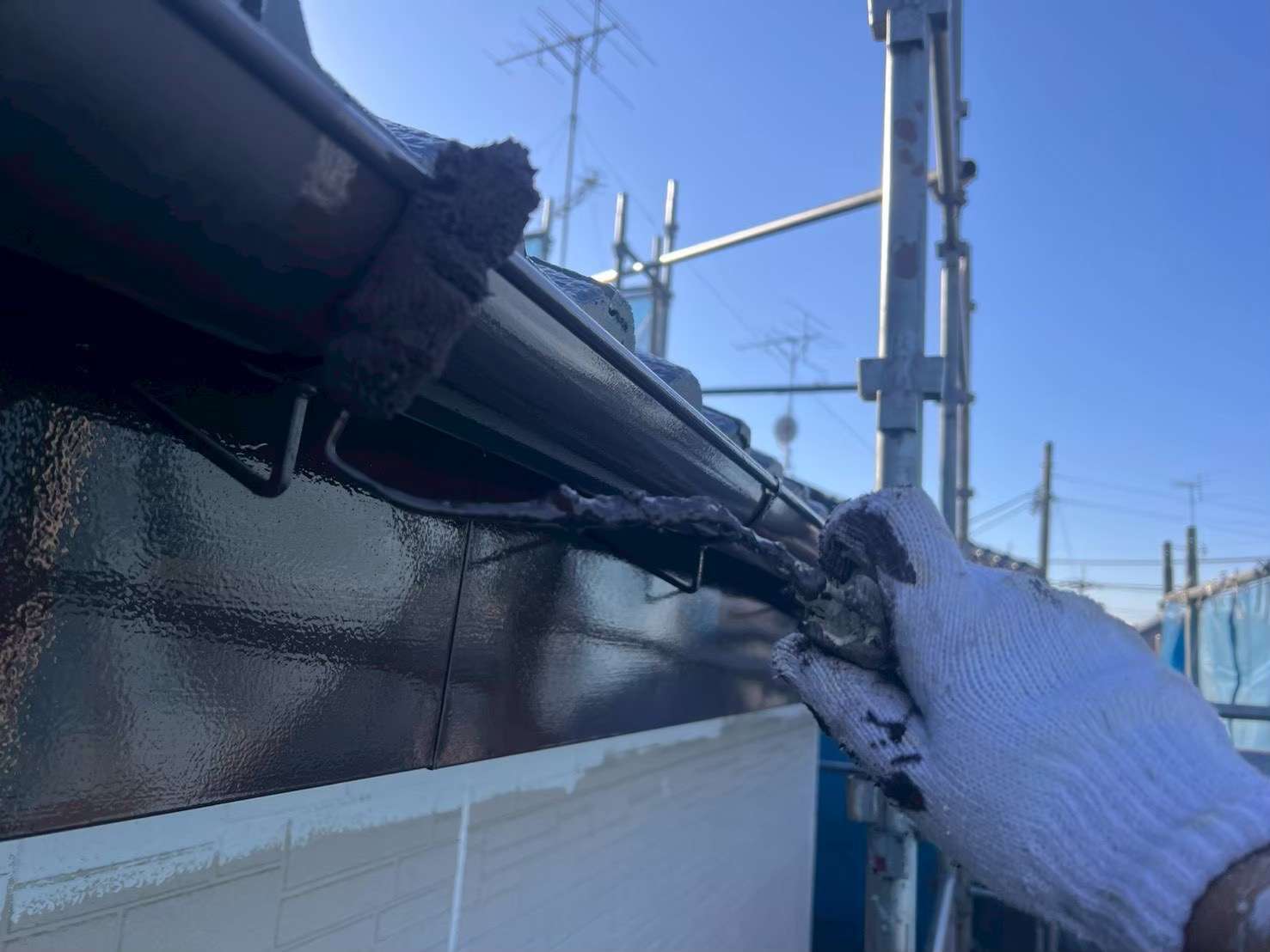 野田市・柏市・流山市の外壁塗装は美装柳屋へ/【作業のご紹介】埼玉県春日部市T様邸・雨樋・破風板塗装作業