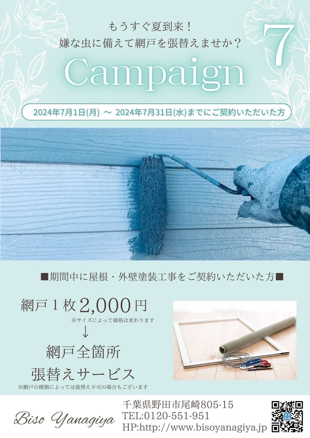 7月キャンペーン始まります!お得に網戸張替えしませんか?/野田市・柏市・流山市の外壁塗装なら美装柳屋へ