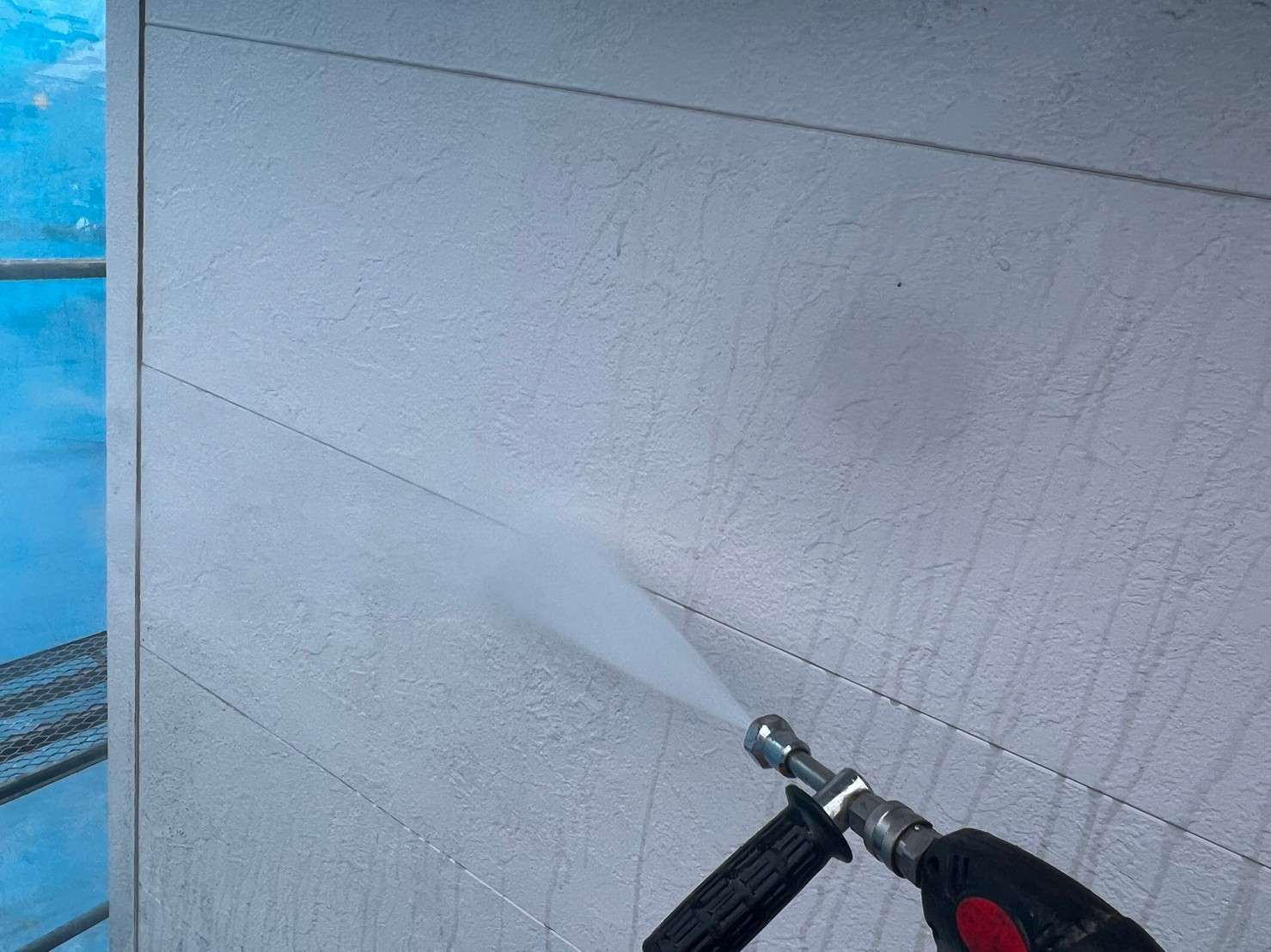 白色の外壁にクリヤー塗装で、明るく綺麗に仕上がりました。