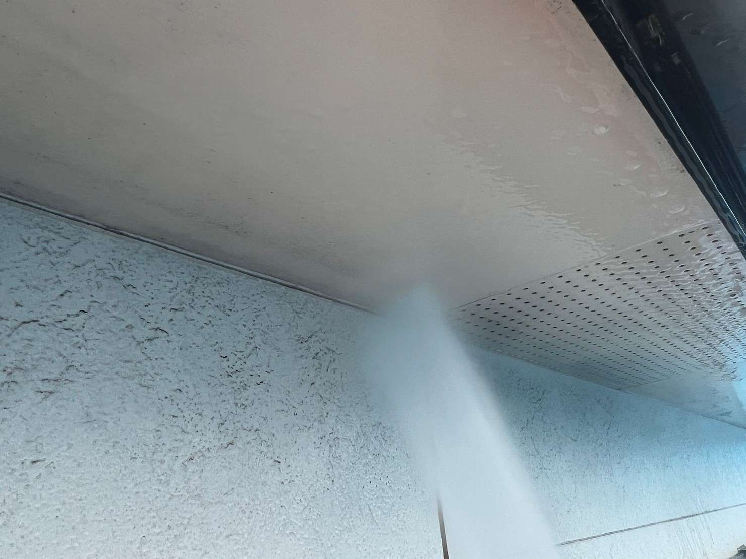 外壁上部は白系で塗装し、外壁下部はサイディングのデザインを残すためクリヤー塗装で仕上げました。