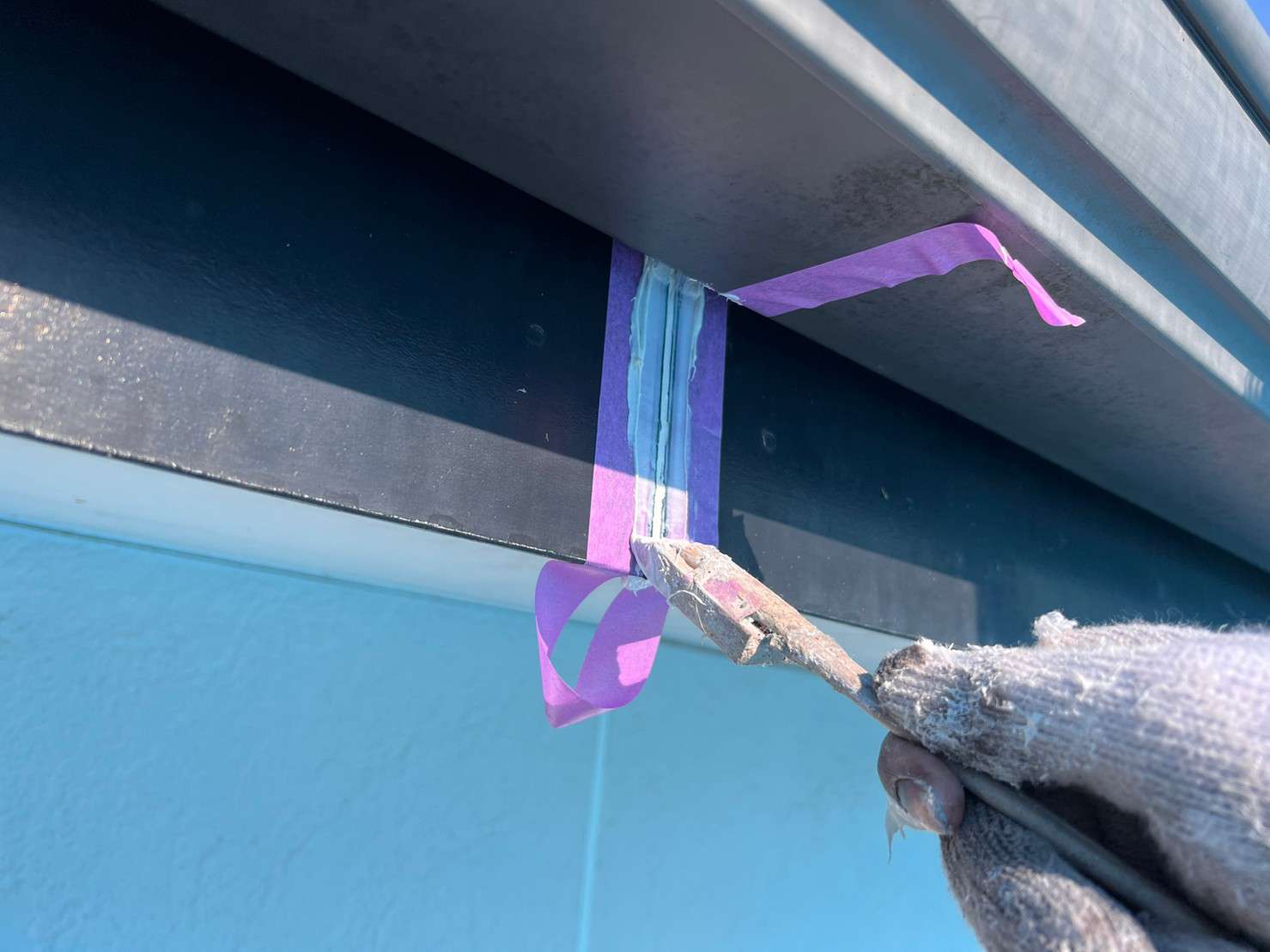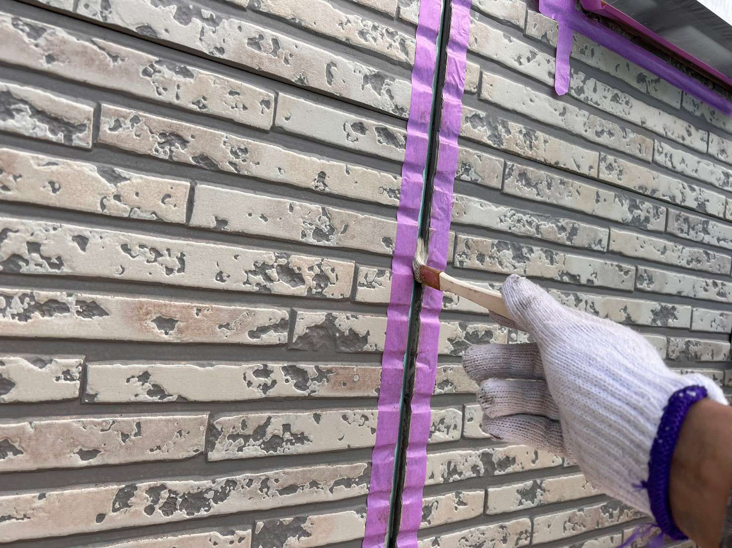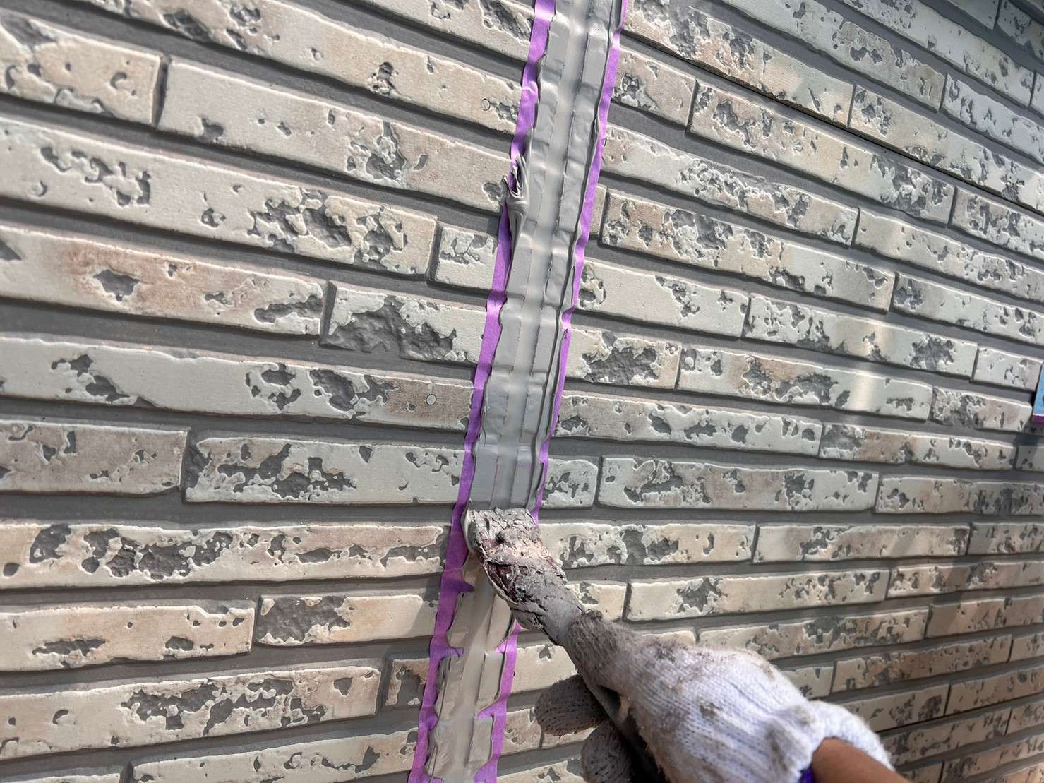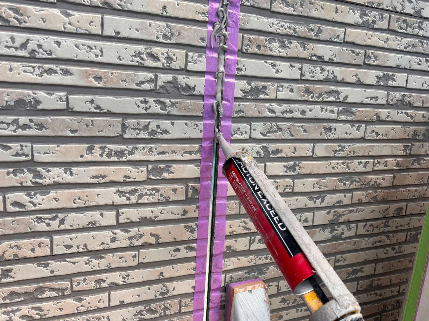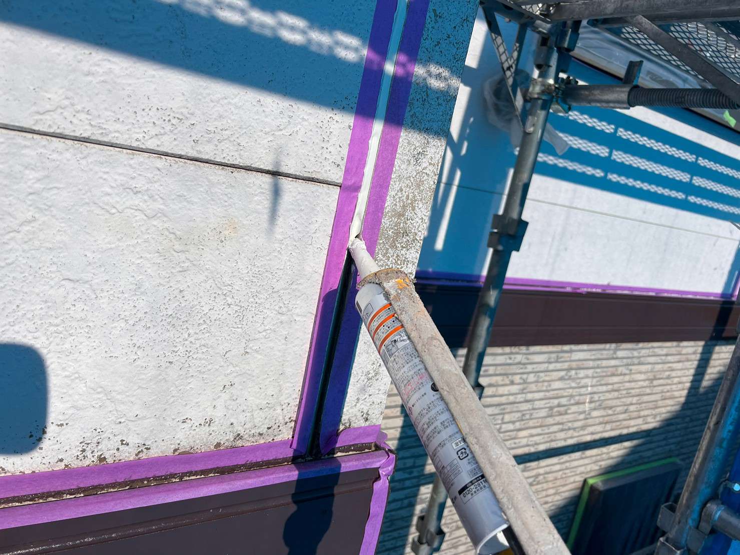 ※ 一般的な外壁塗装は、色をつけてしまうのでコーキング材(シーリング材)は白色を使うことが多いのですが、クリヤー塗装の場合は色味がそのまま残るので外壁色に合うコーキング材(シーリング材)を選び、打ち込み工事をします。