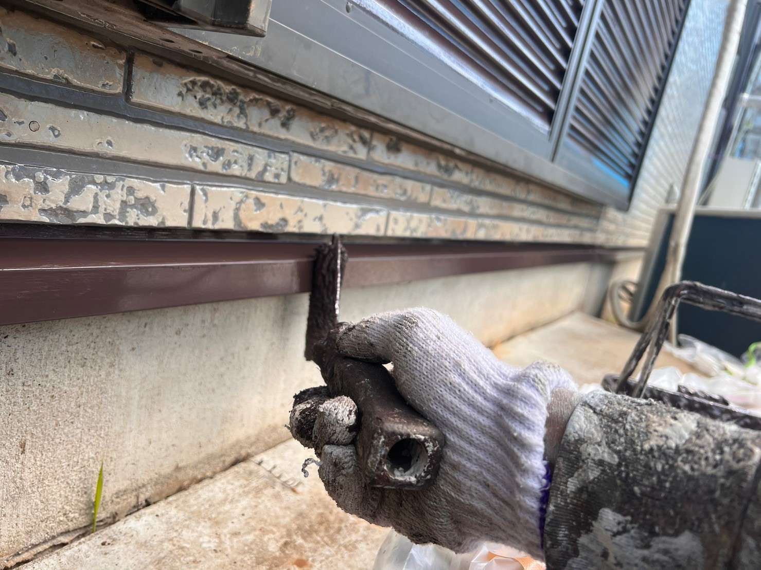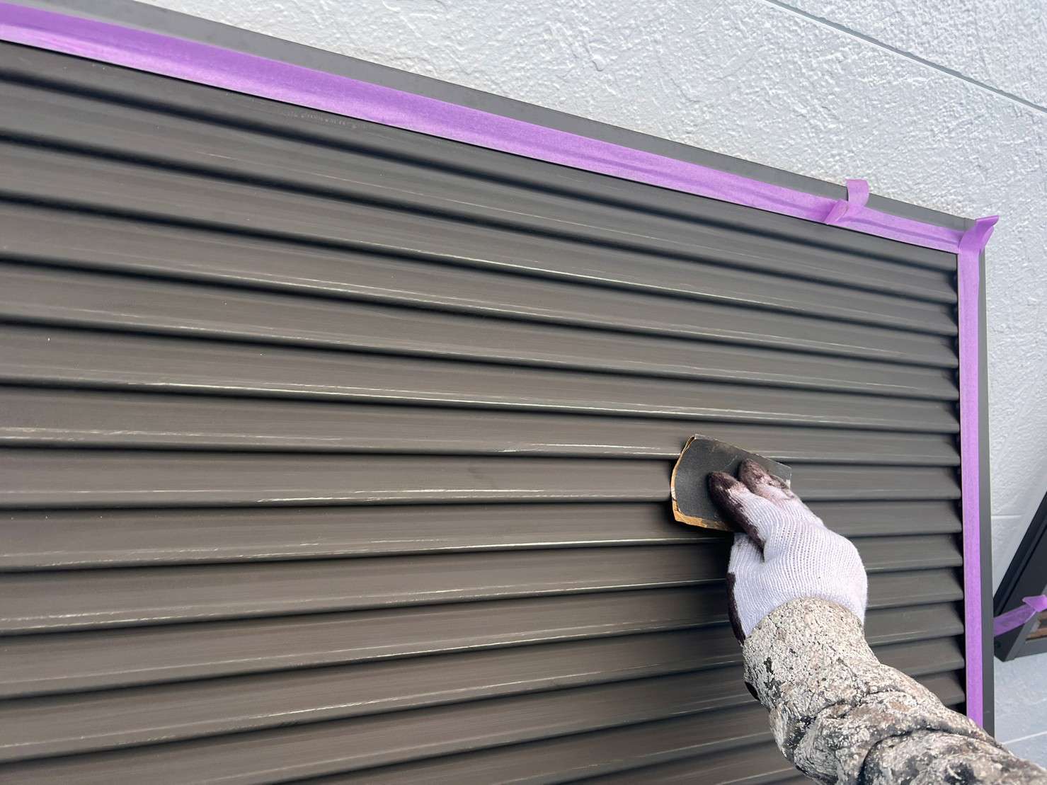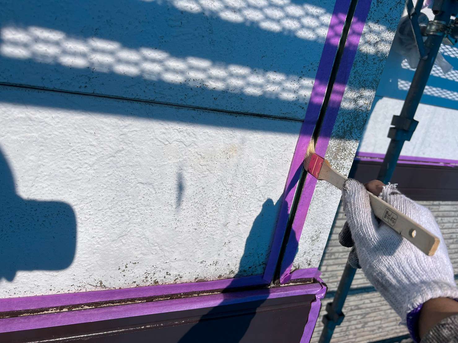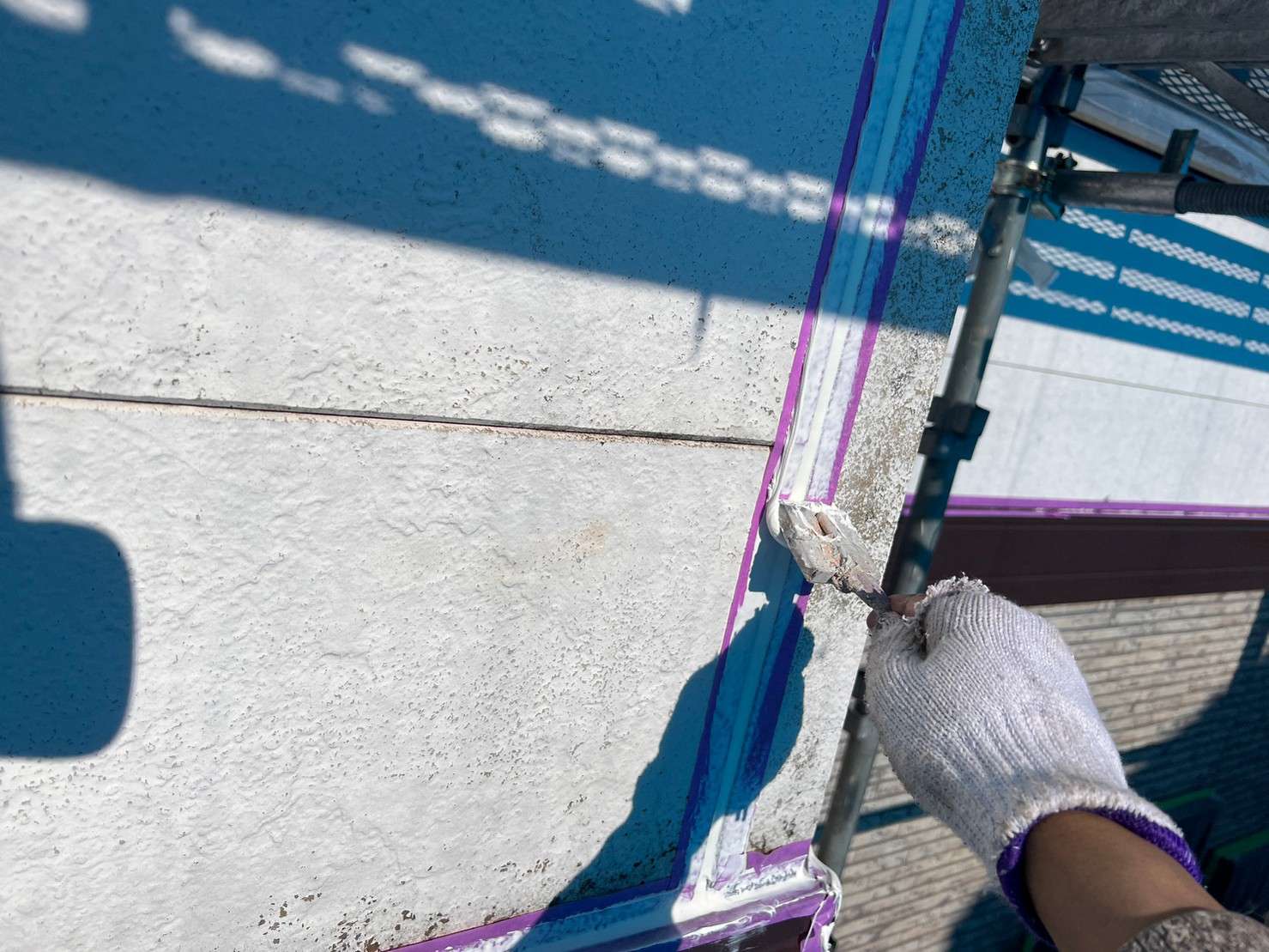 ※ 一般的な外壁塗装は、色をつけてしまうのでコーキング材(シーリング材)は白色を使うことが多いのですが、クリヤー塗装の場合は色味がそのまま残るので外壁色に合うコーキング材(シーリング材)を選び、打ち込み工事をします。
