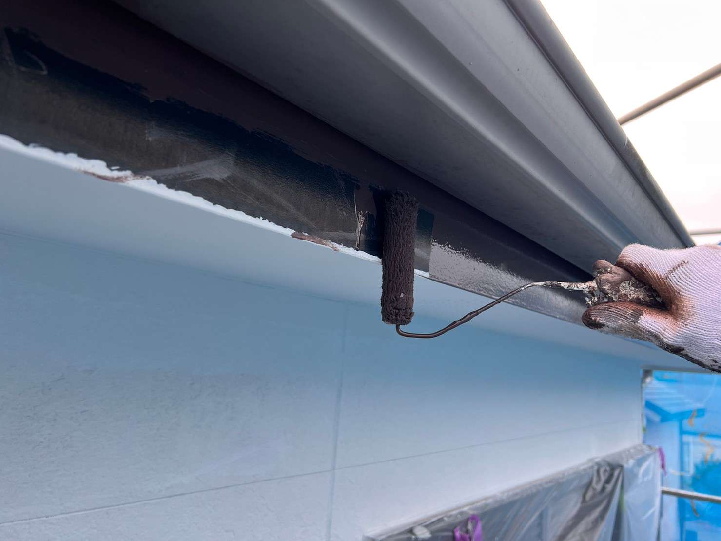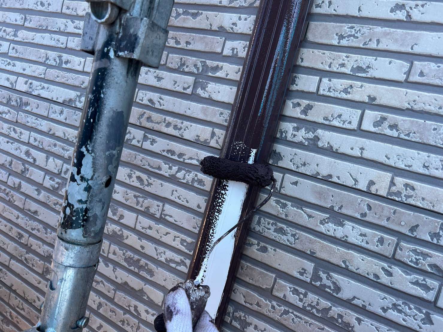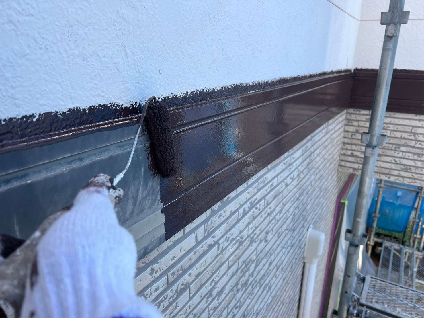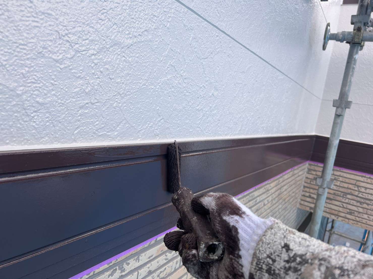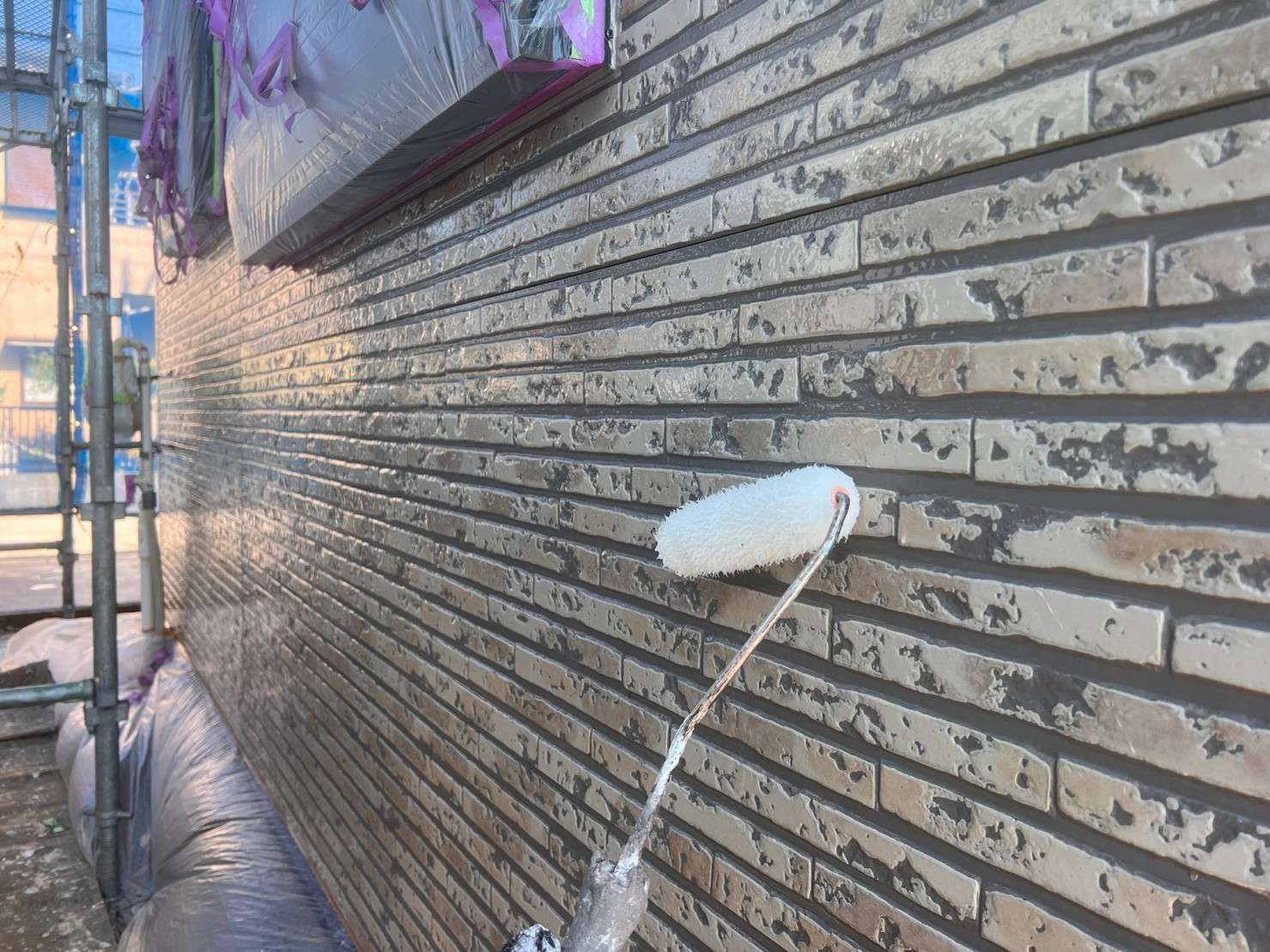 ※ 一般的な外壁塗装は、色をつけてしまうのでコーキング材(シーリング材)は白色を使うことが多いのですが、クリヤー塗装の場合は色味がそのまま残るので外壁色に合うコーキング材(シーリング材)を選び、打ち込み工事をします。
