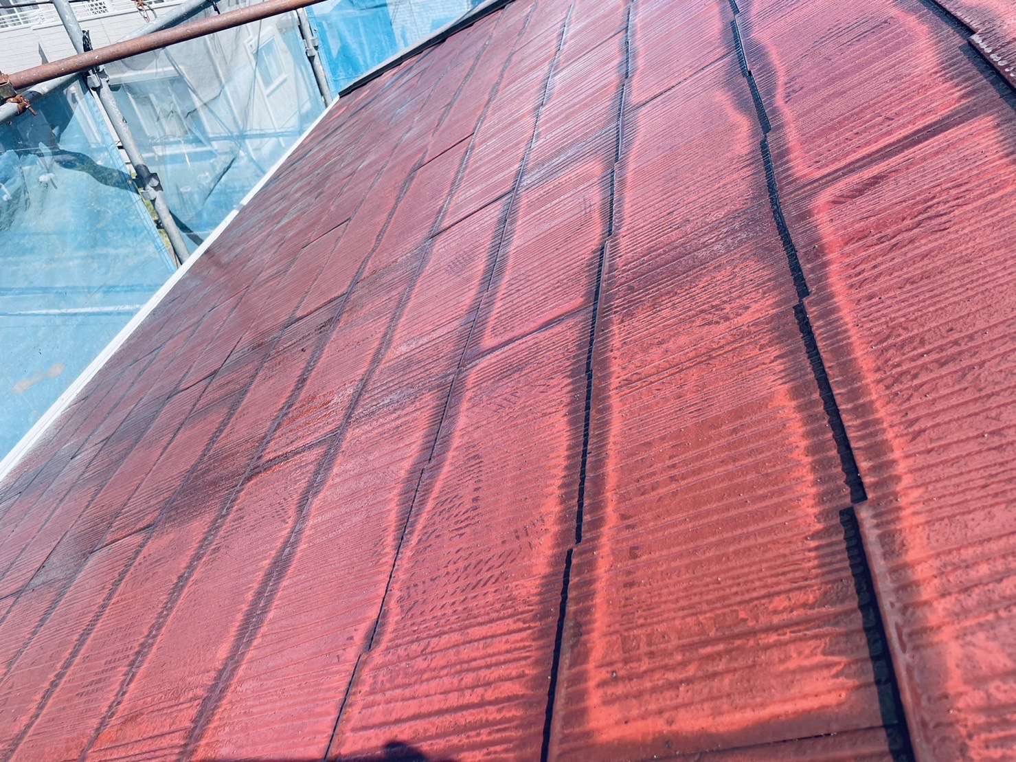 一度も塗装をしていない屋根は、苔がびっしりとこびりついてしまっていて、高圧洗浄をかけると、見えてくるのがひび割れです。(洗浄前にもひび割れが見えている箇所もあります)