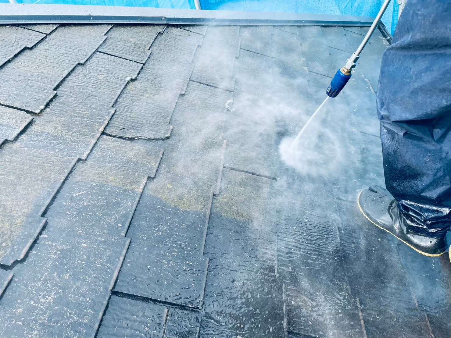 高圧洗浄機で洗浄をすると、コケや藻で見えなかったクラックがよく見えるようになります。