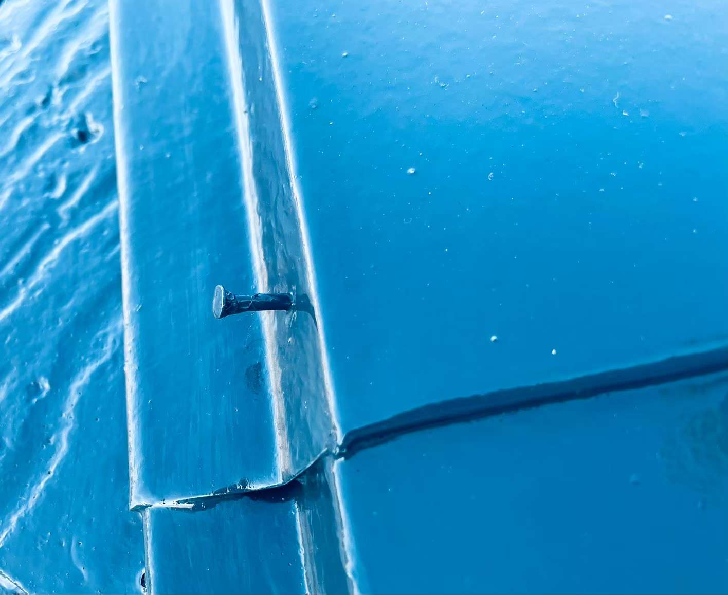 美装柳屋では、屋根塗装の際に、浮いてしまっている釘は打ち込みコーキングで抑えています。
