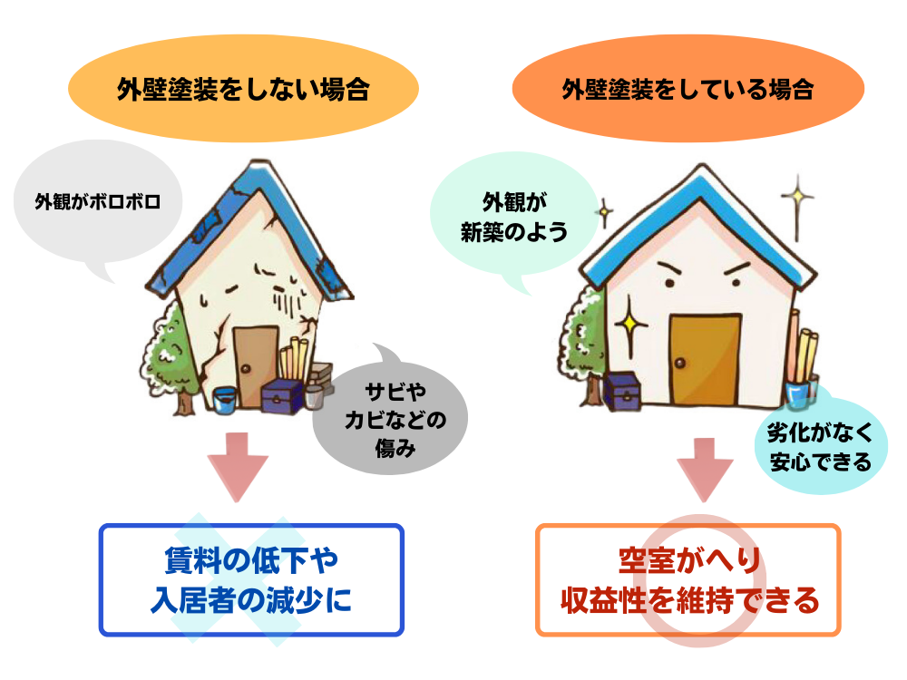 アパートの外観は入居希望者が必ず確認する部分であり、部屋探しに大きく影響するため、外壁塗装リフォームを行って美観を保つことに大きなメリットがります。